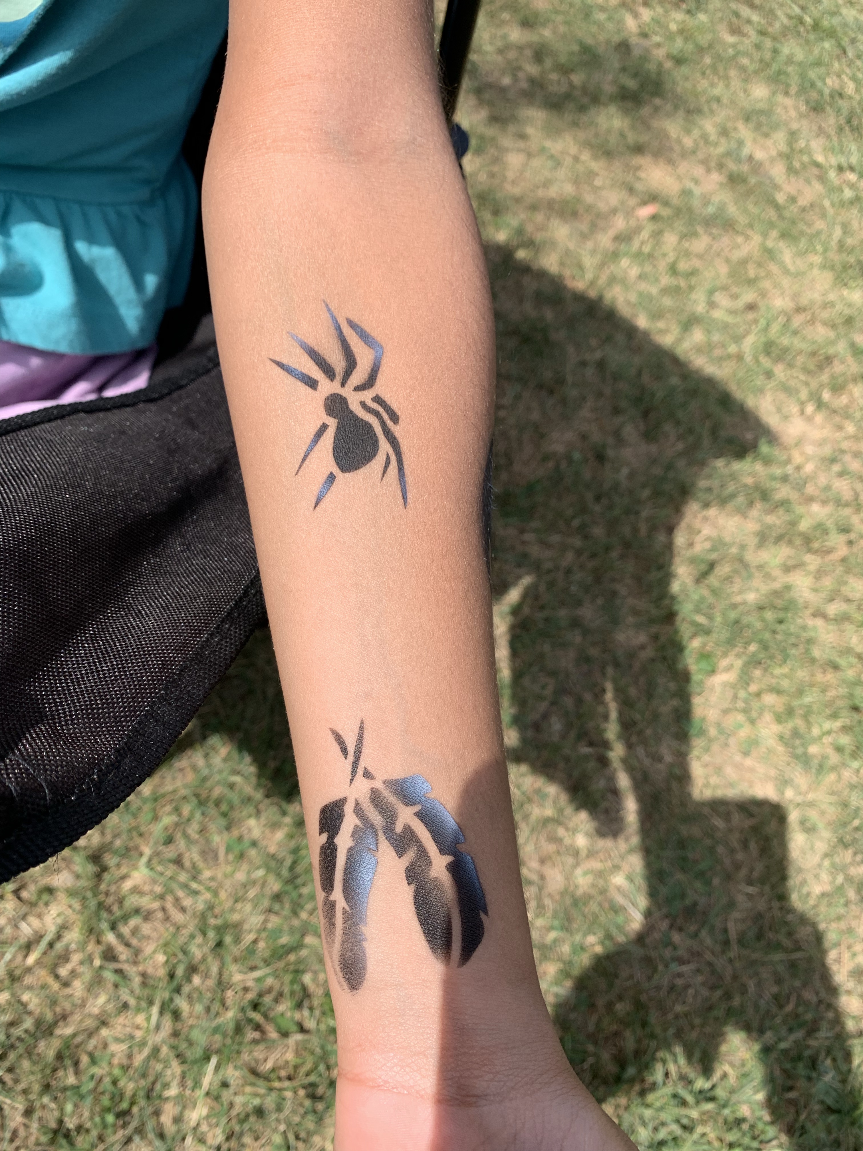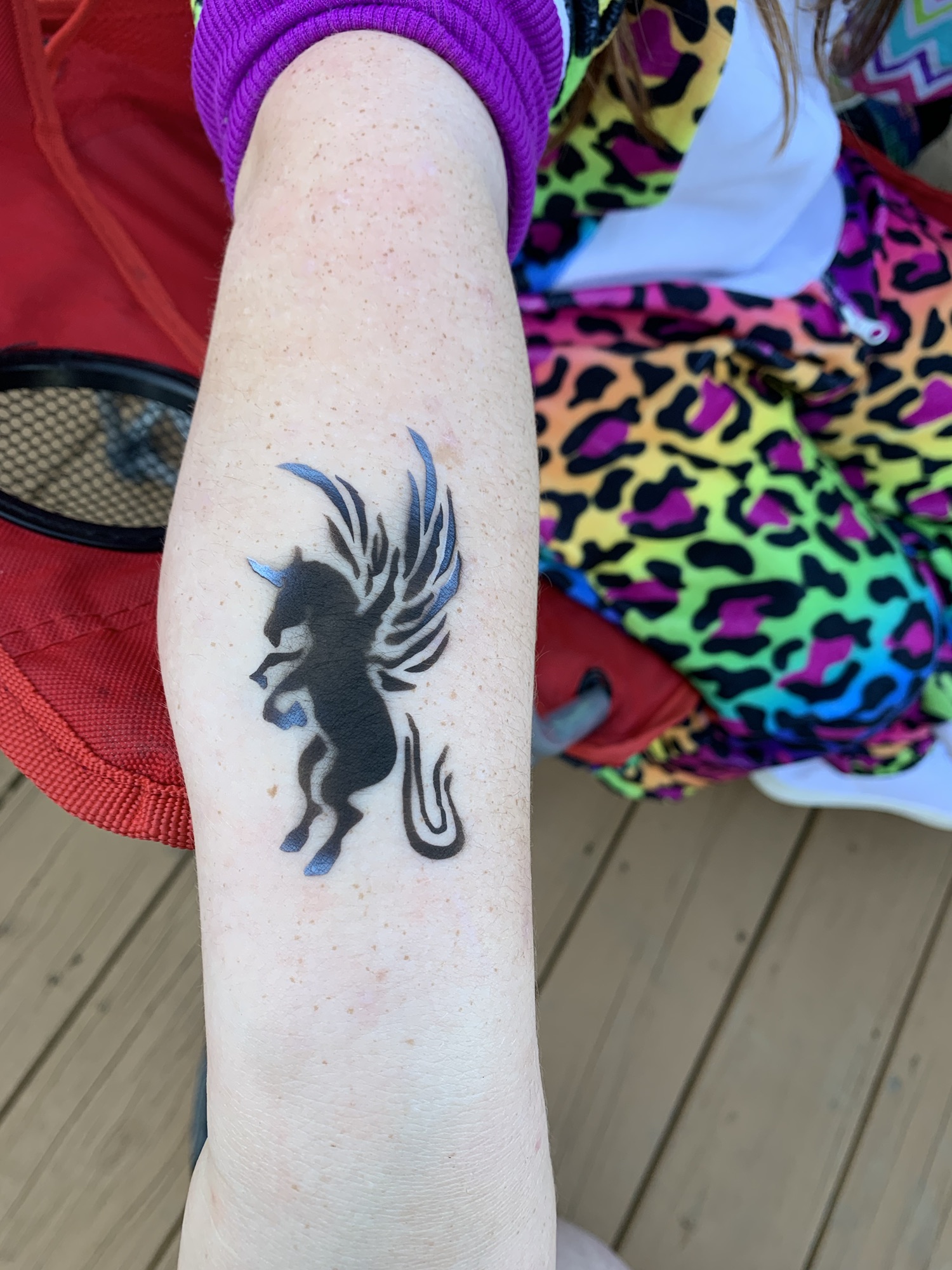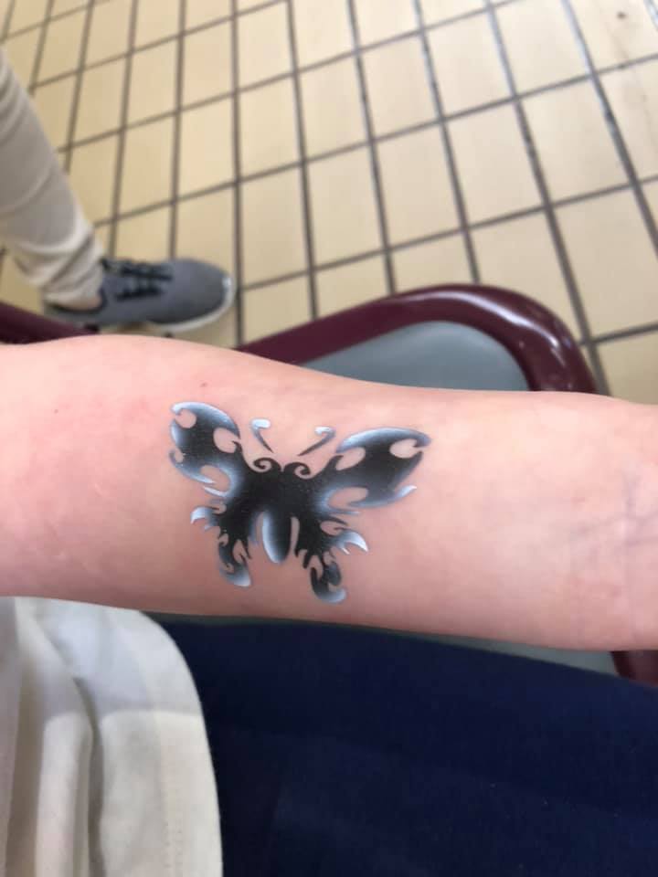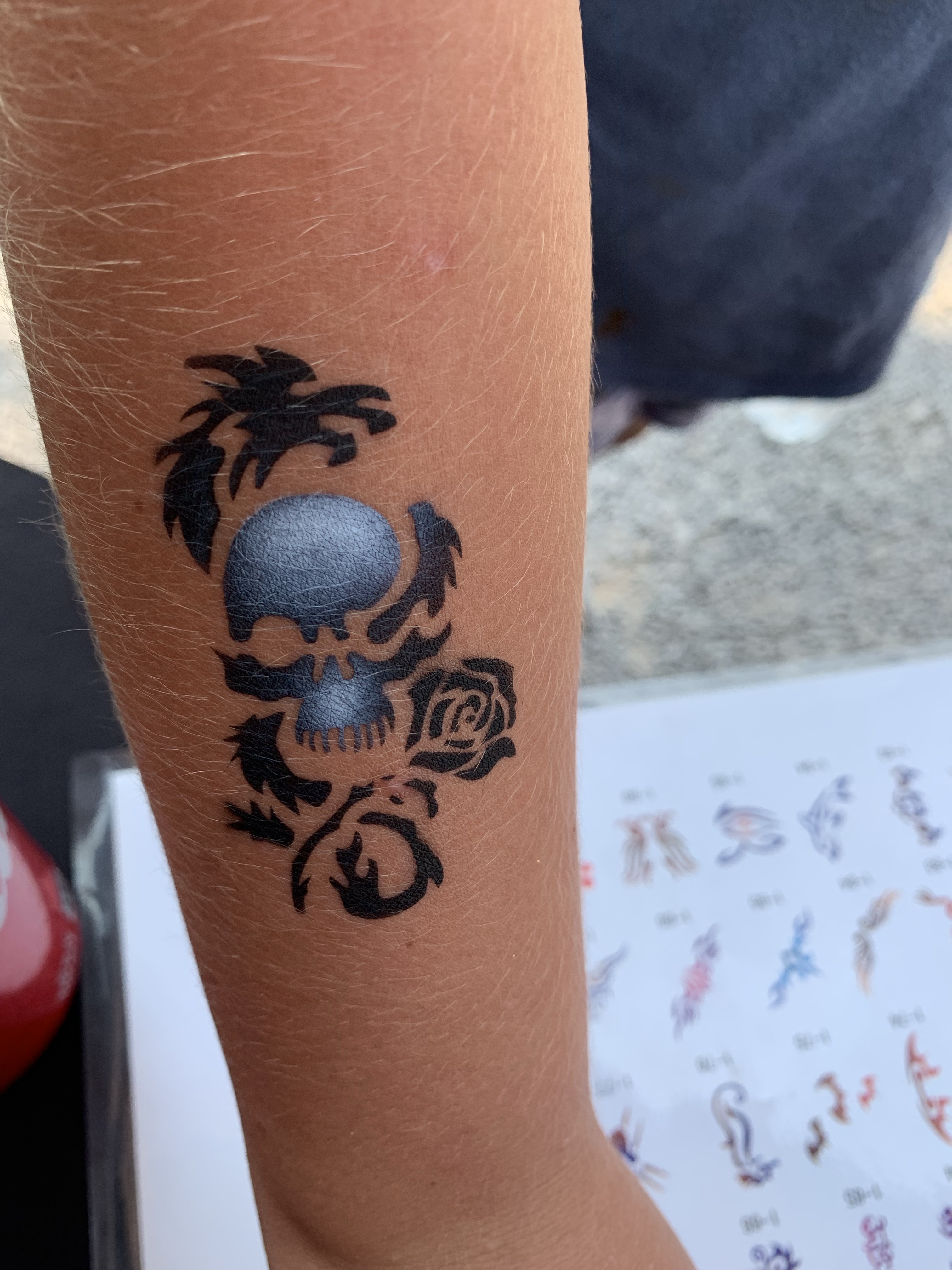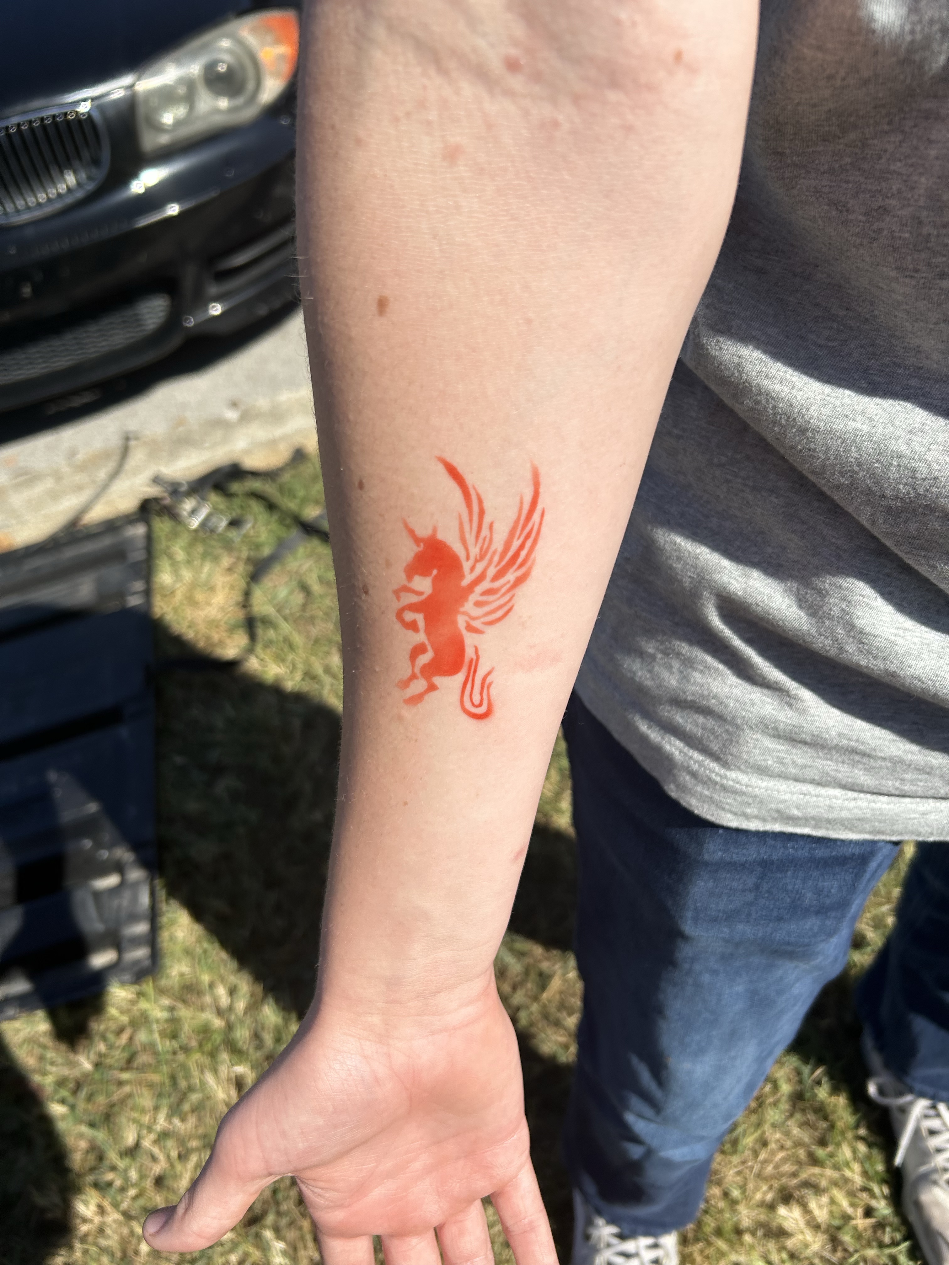 I also do temporary tattoos with my airbrush. Kids and adults all love them!! I am available for parties and events. Just contact me for more information.