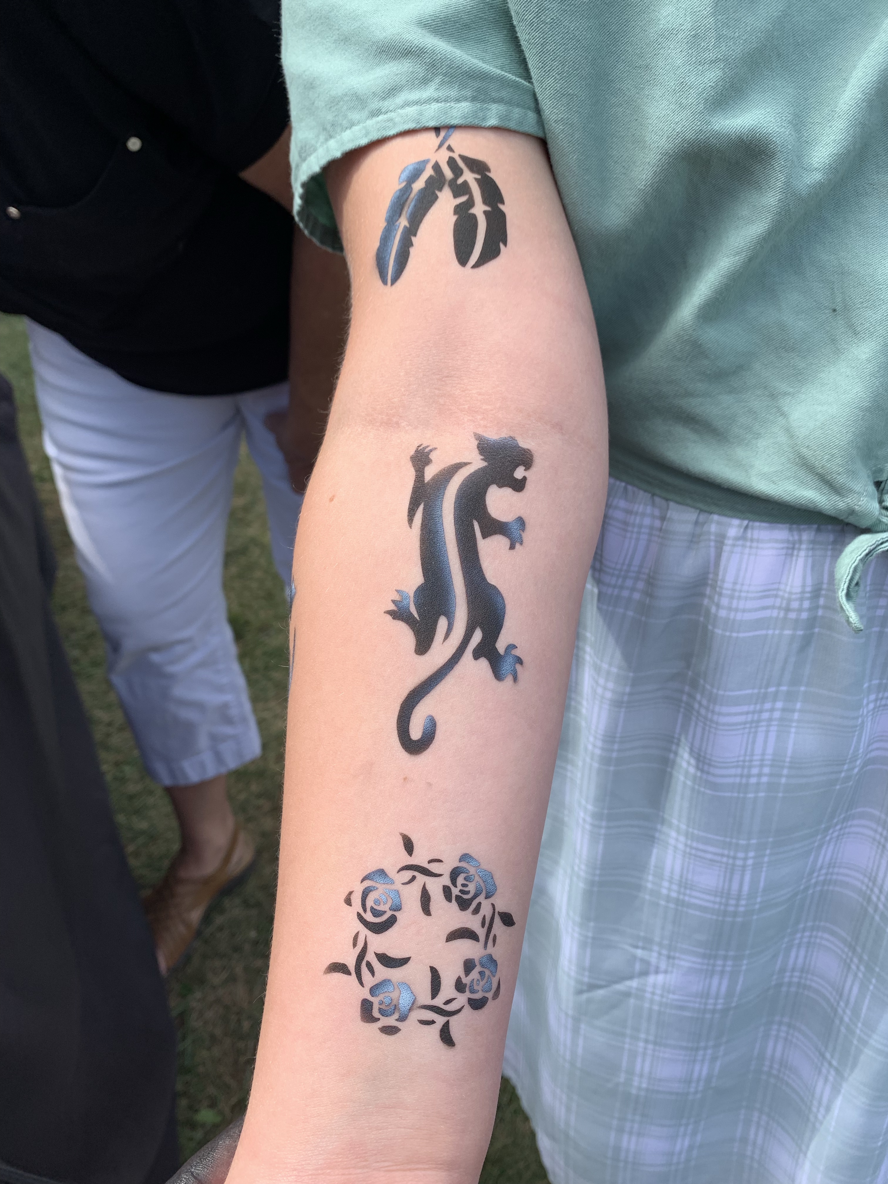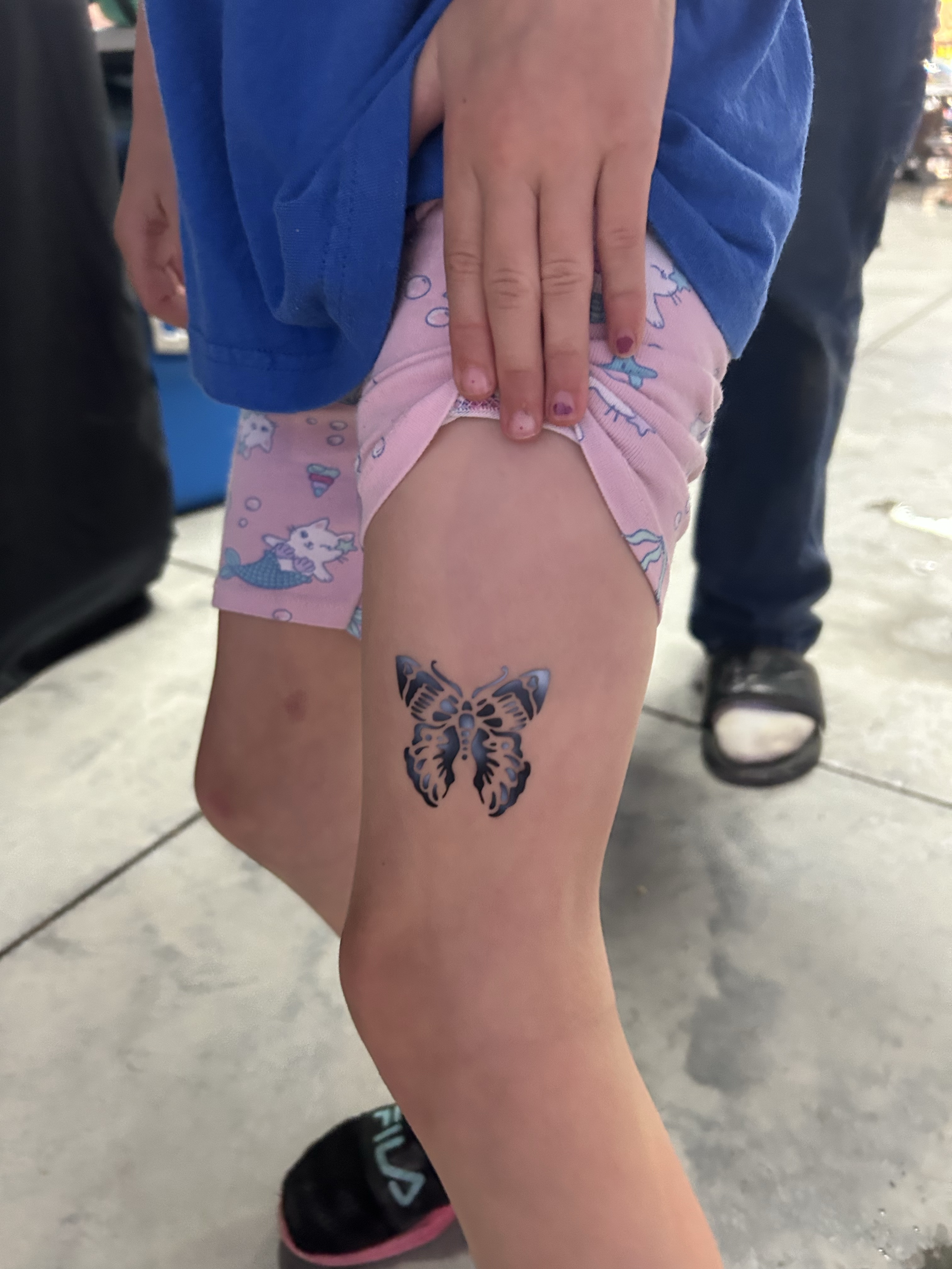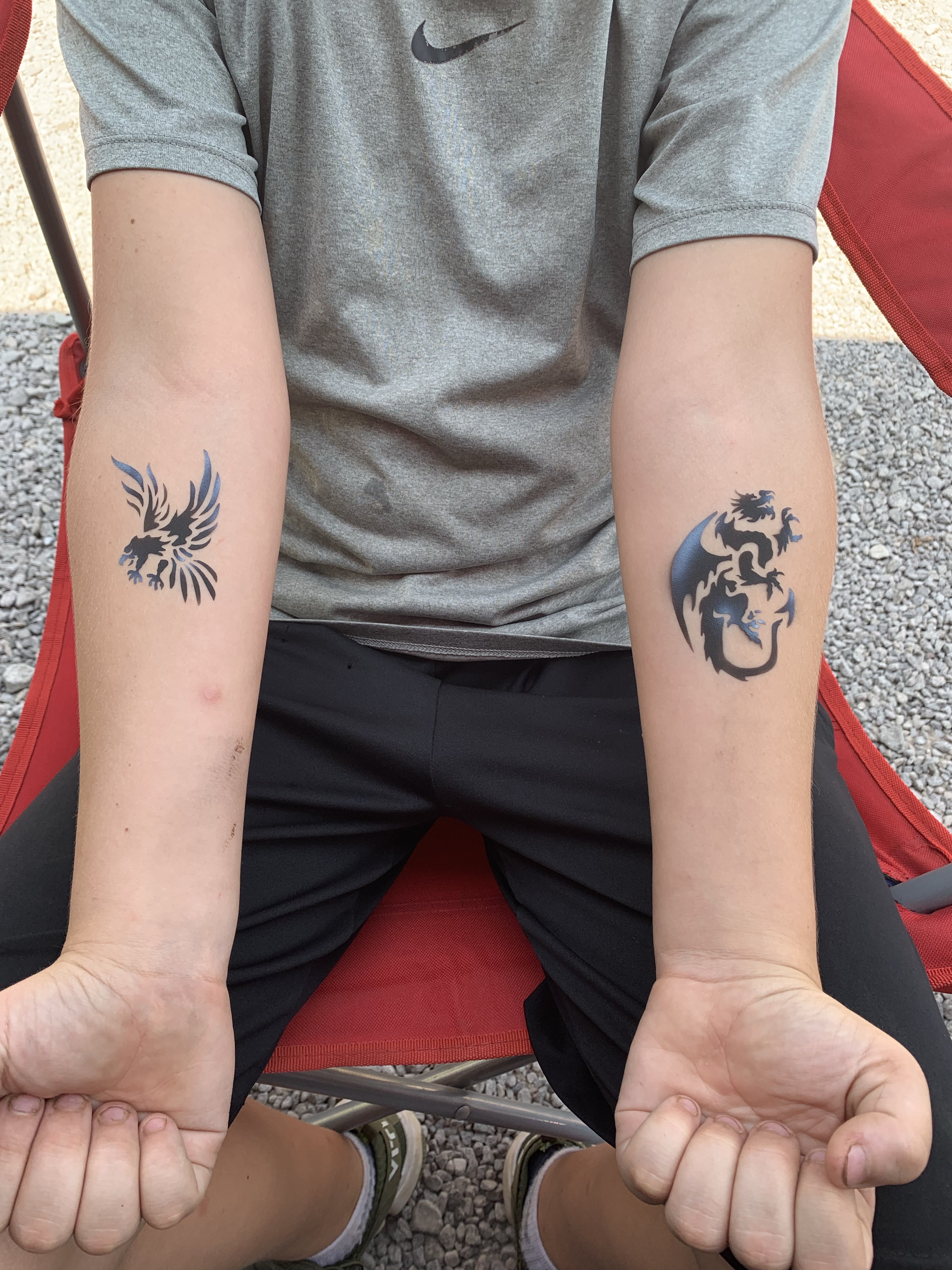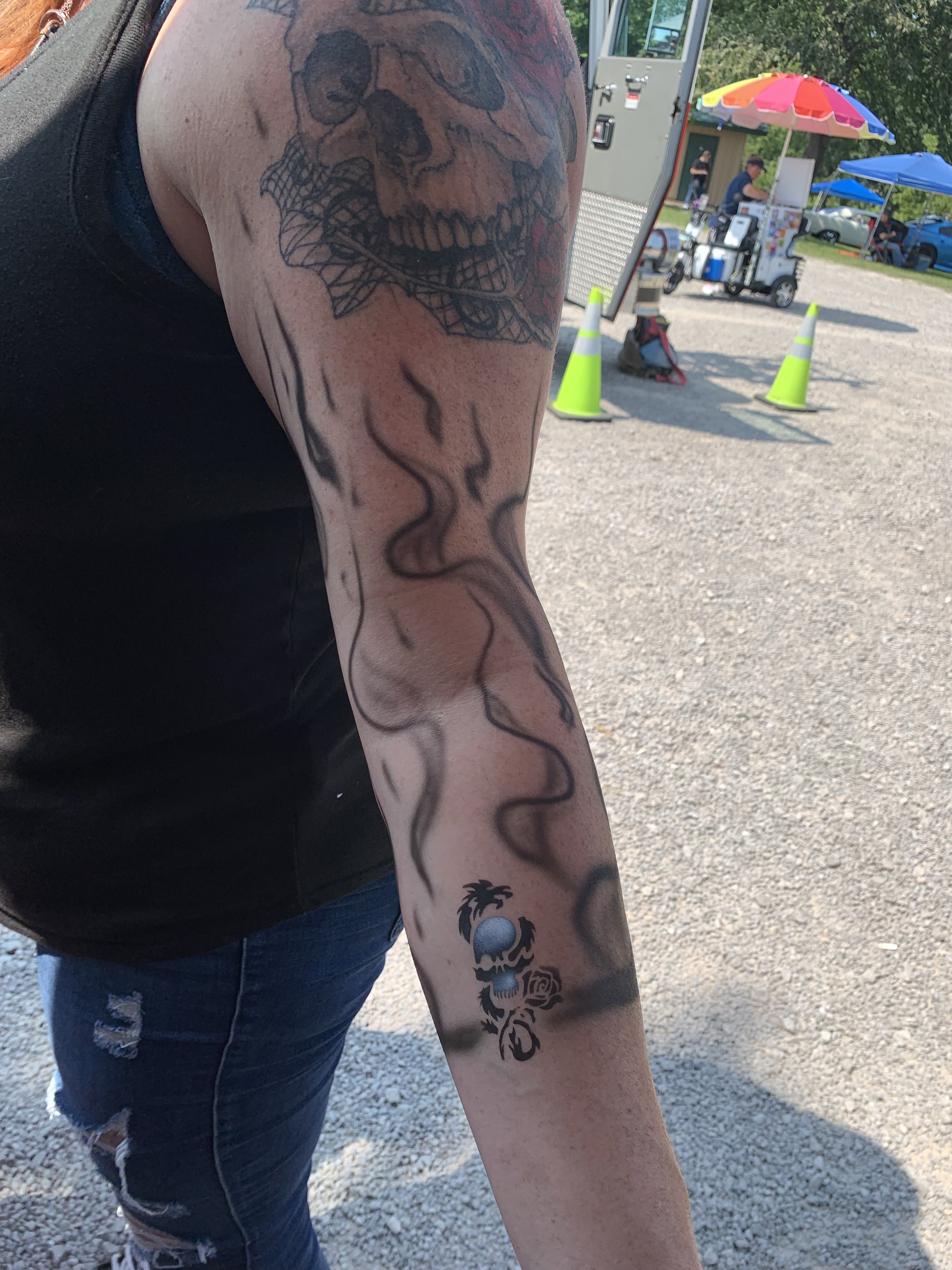 I also do temporary tattoos with my airbrush. Kids and adults all love them!! I am available for parties and events. Just contact me for more information.