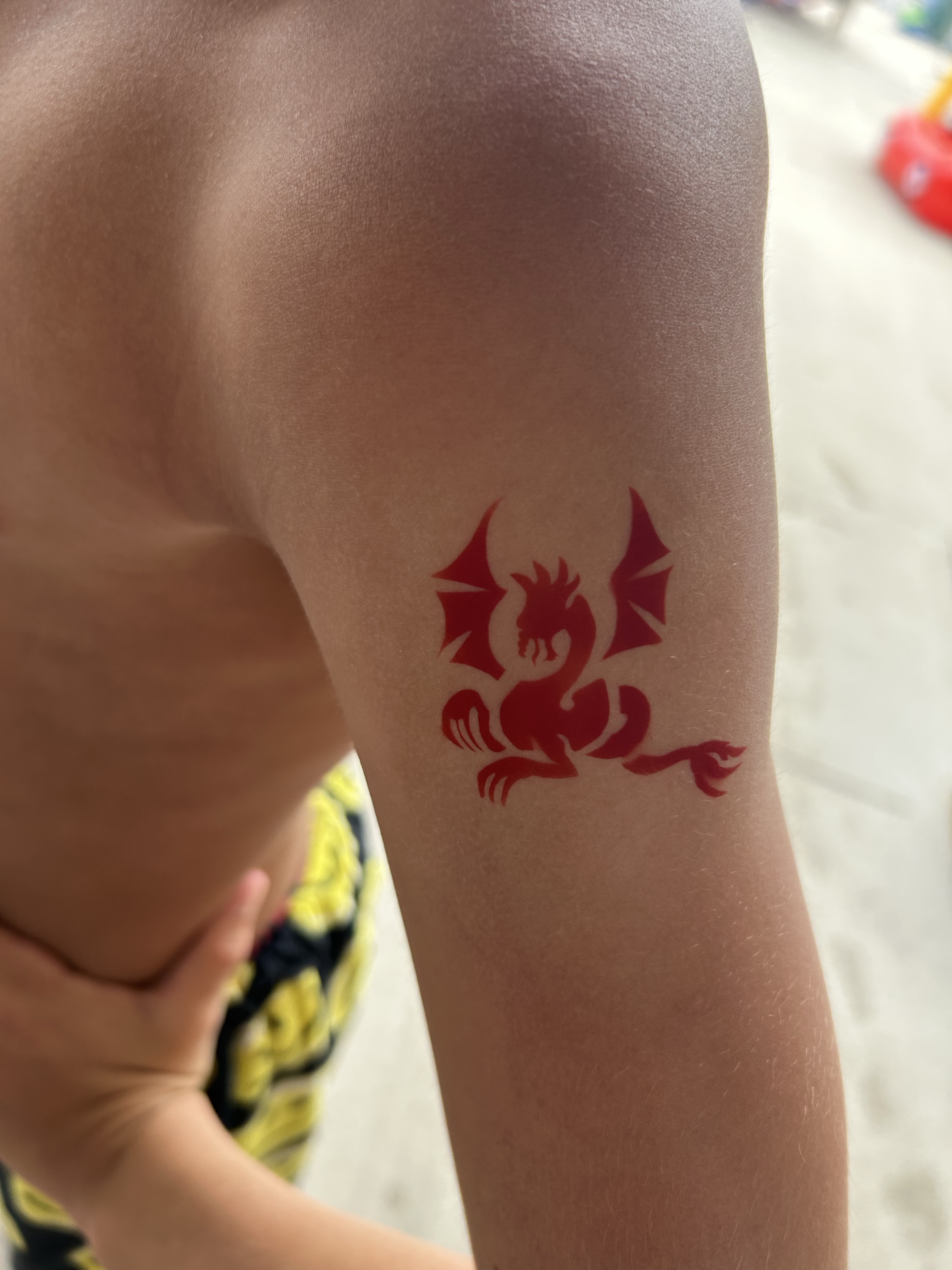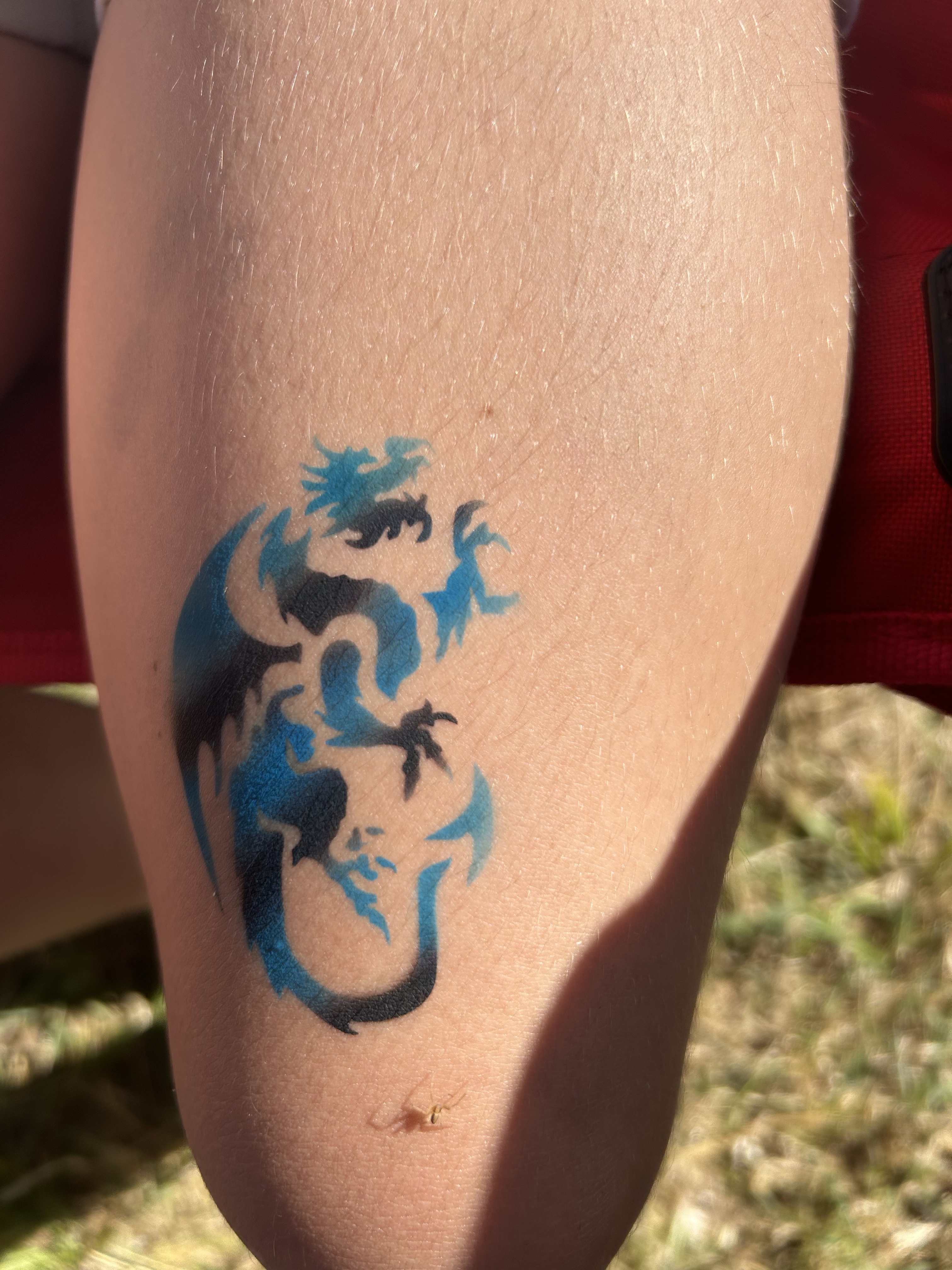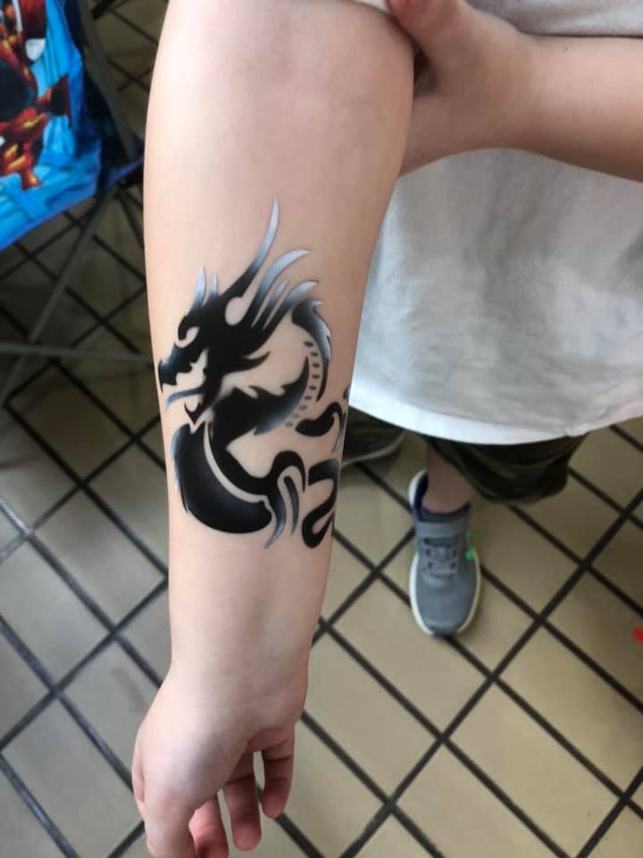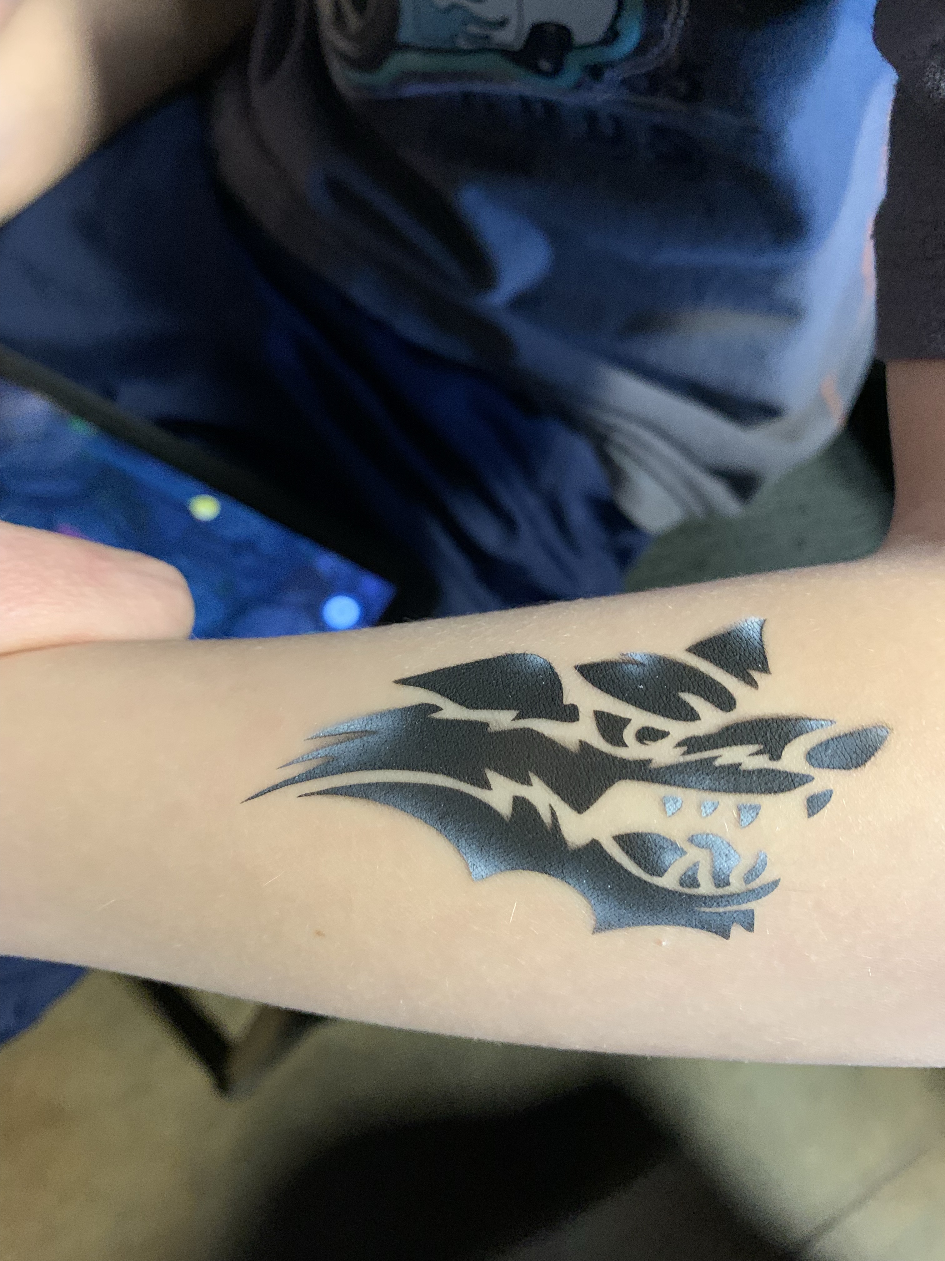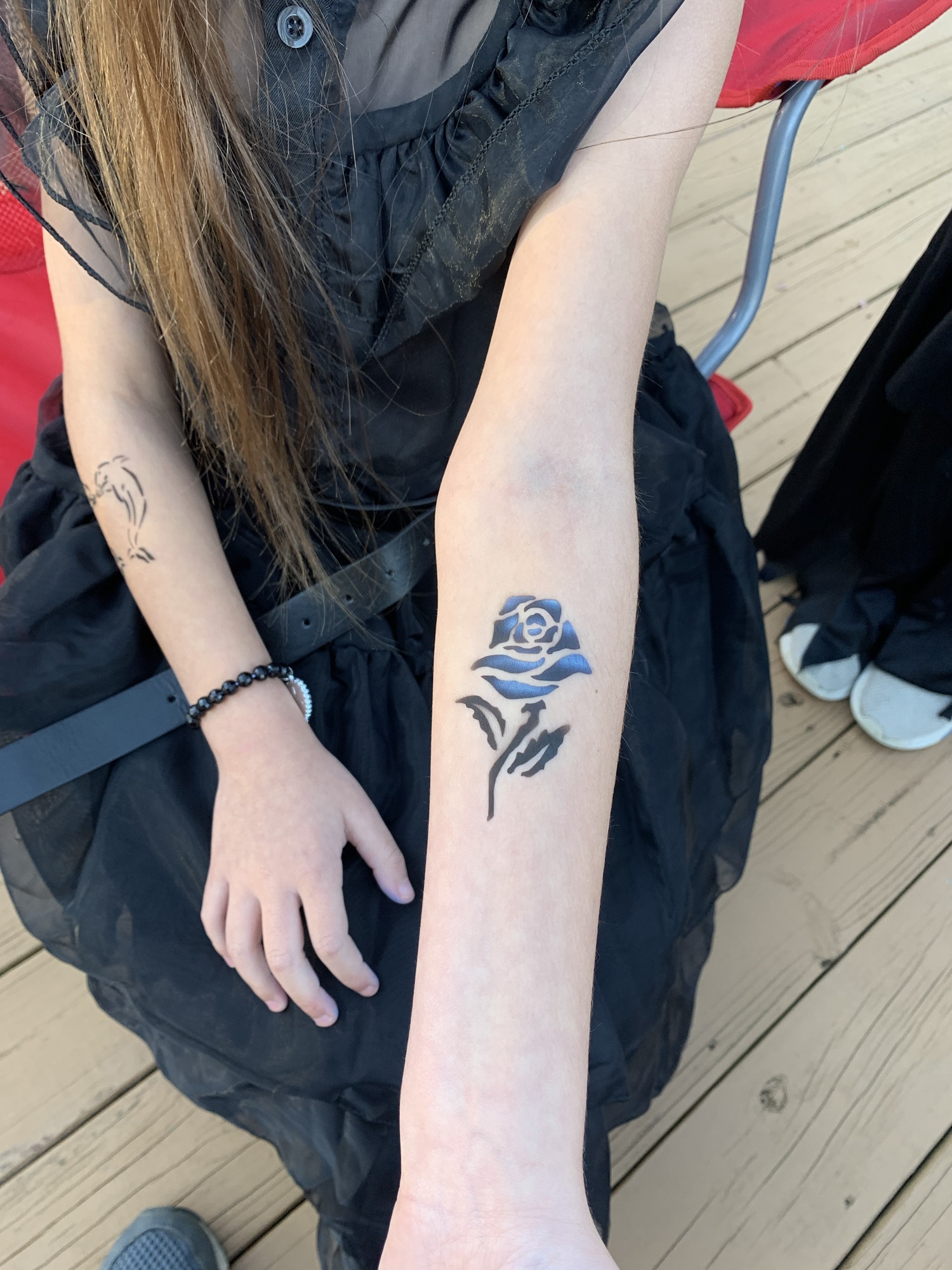 I also do temporary tattoos with my airbrush. Kids and adults all love them!! I am available for parties and events. Just contact me for more information.