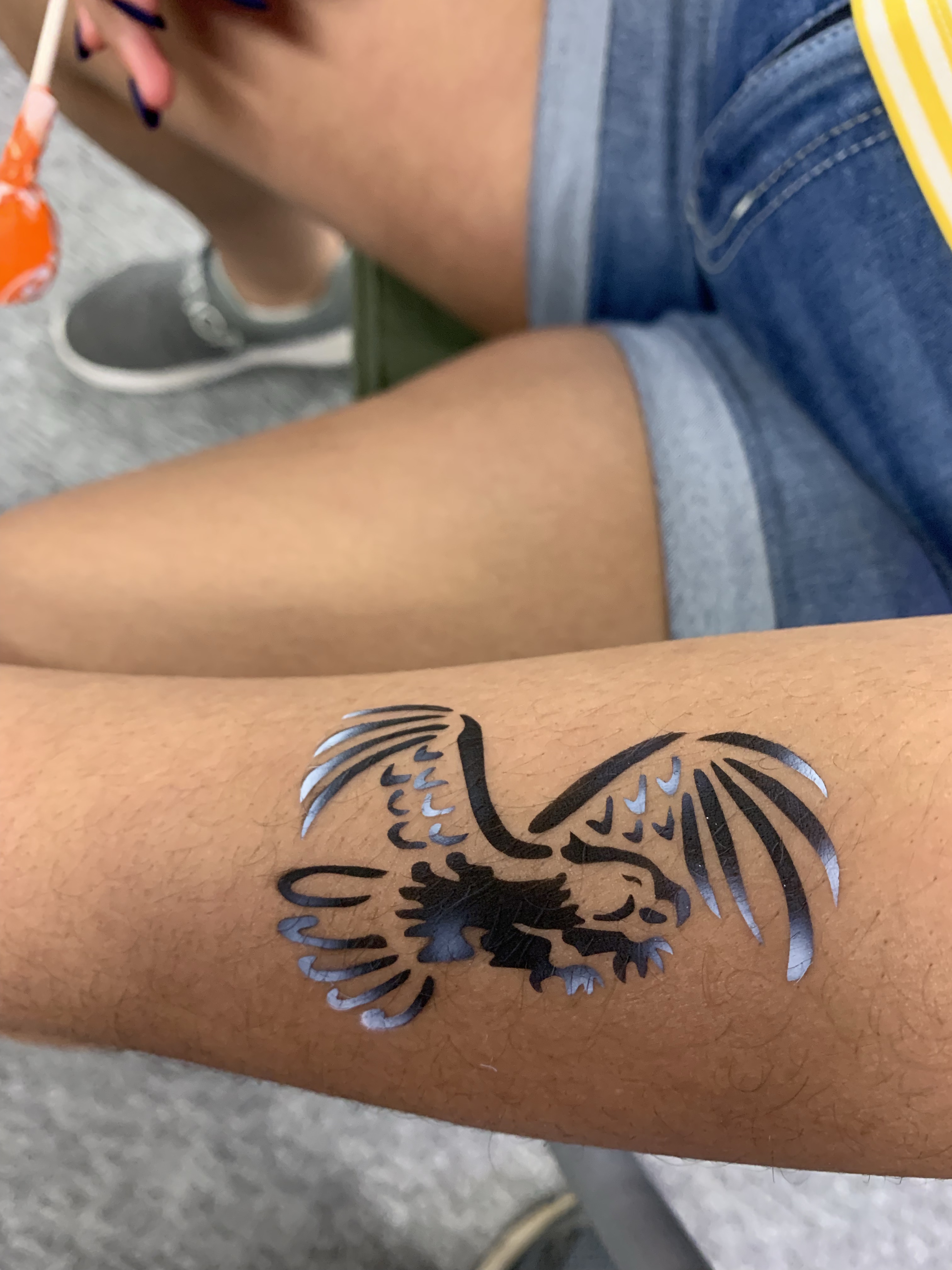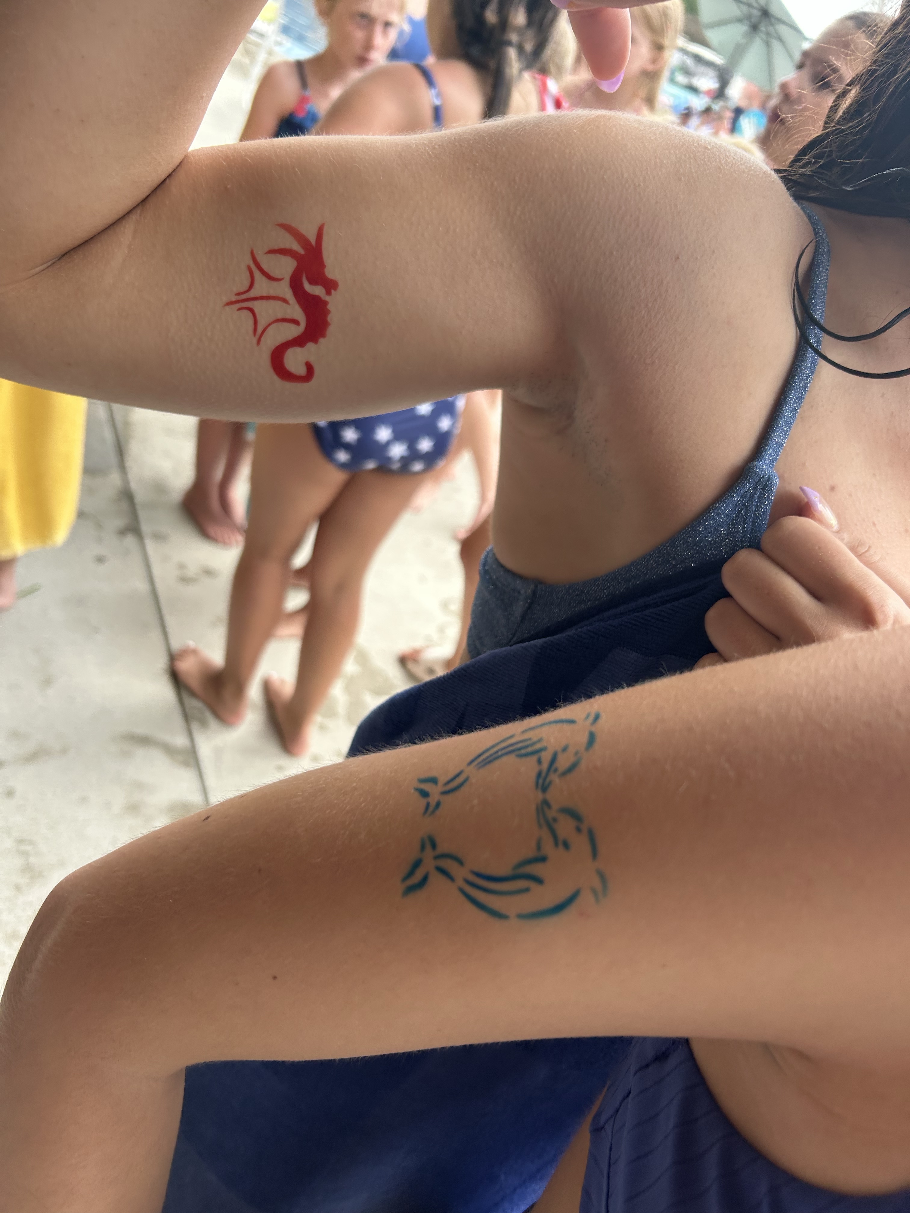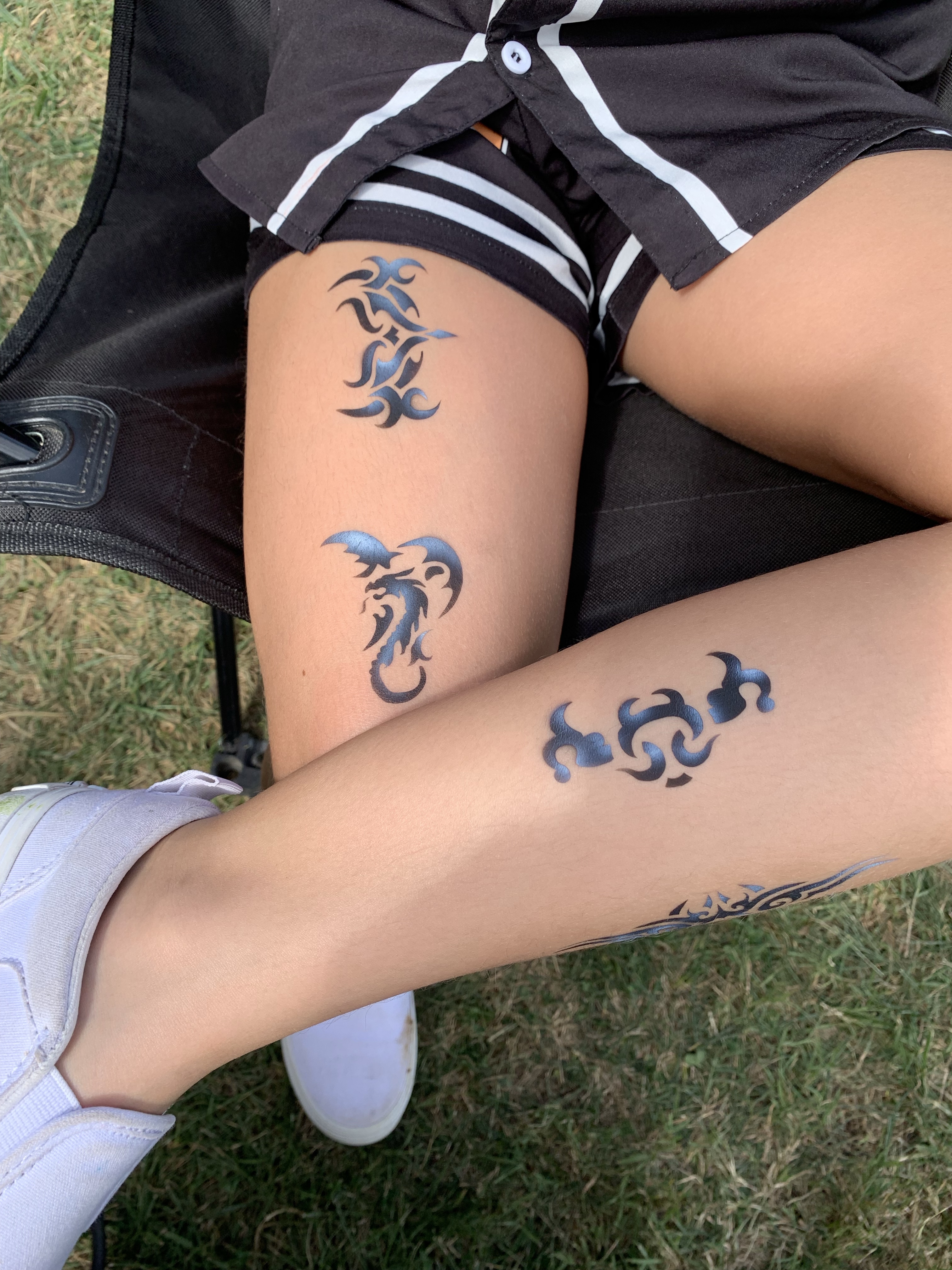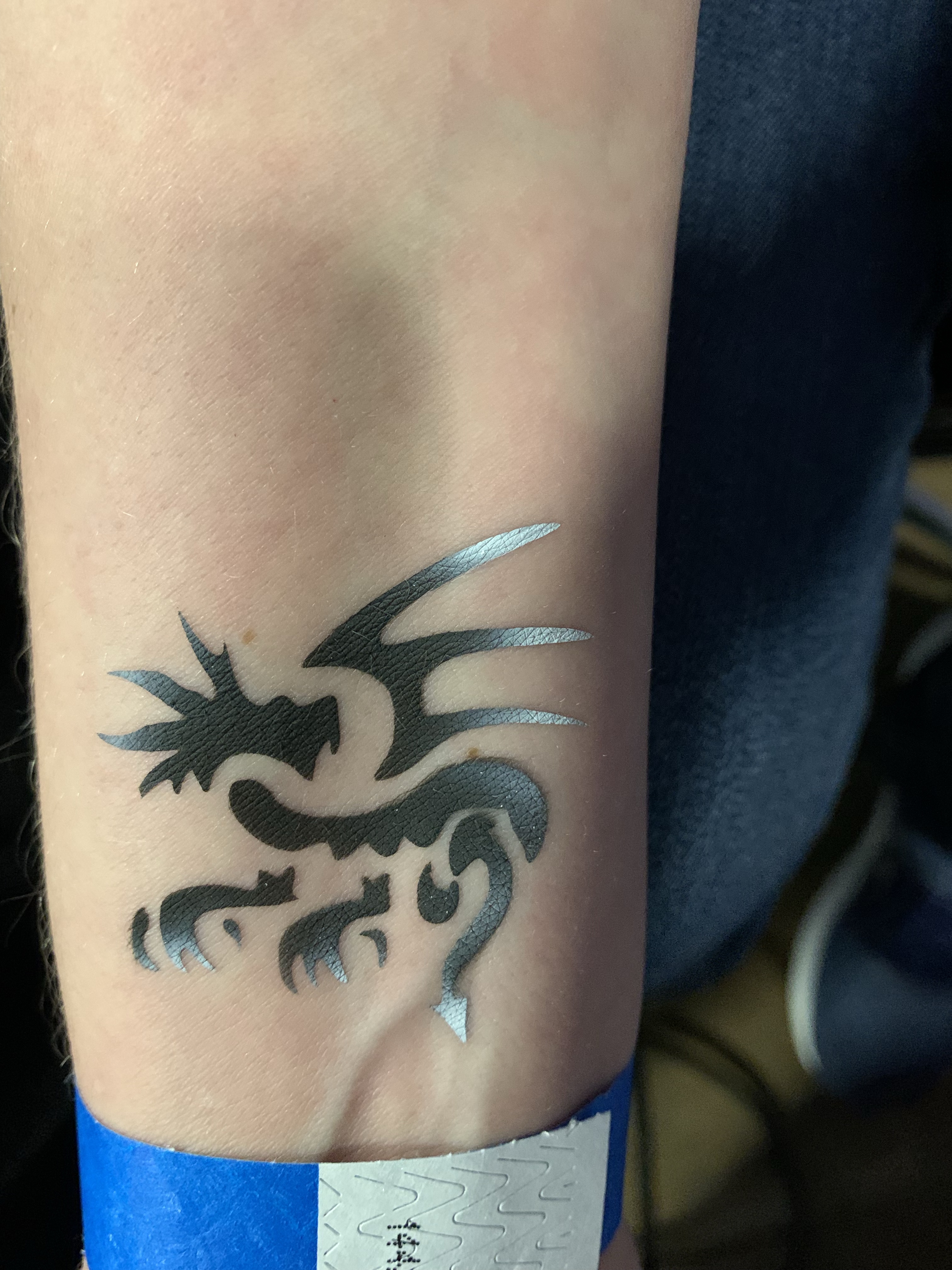I also do temporary tattoos with my airbrush. Kids and adults all love them!! I am available for parties and events. Just contact me for more information.