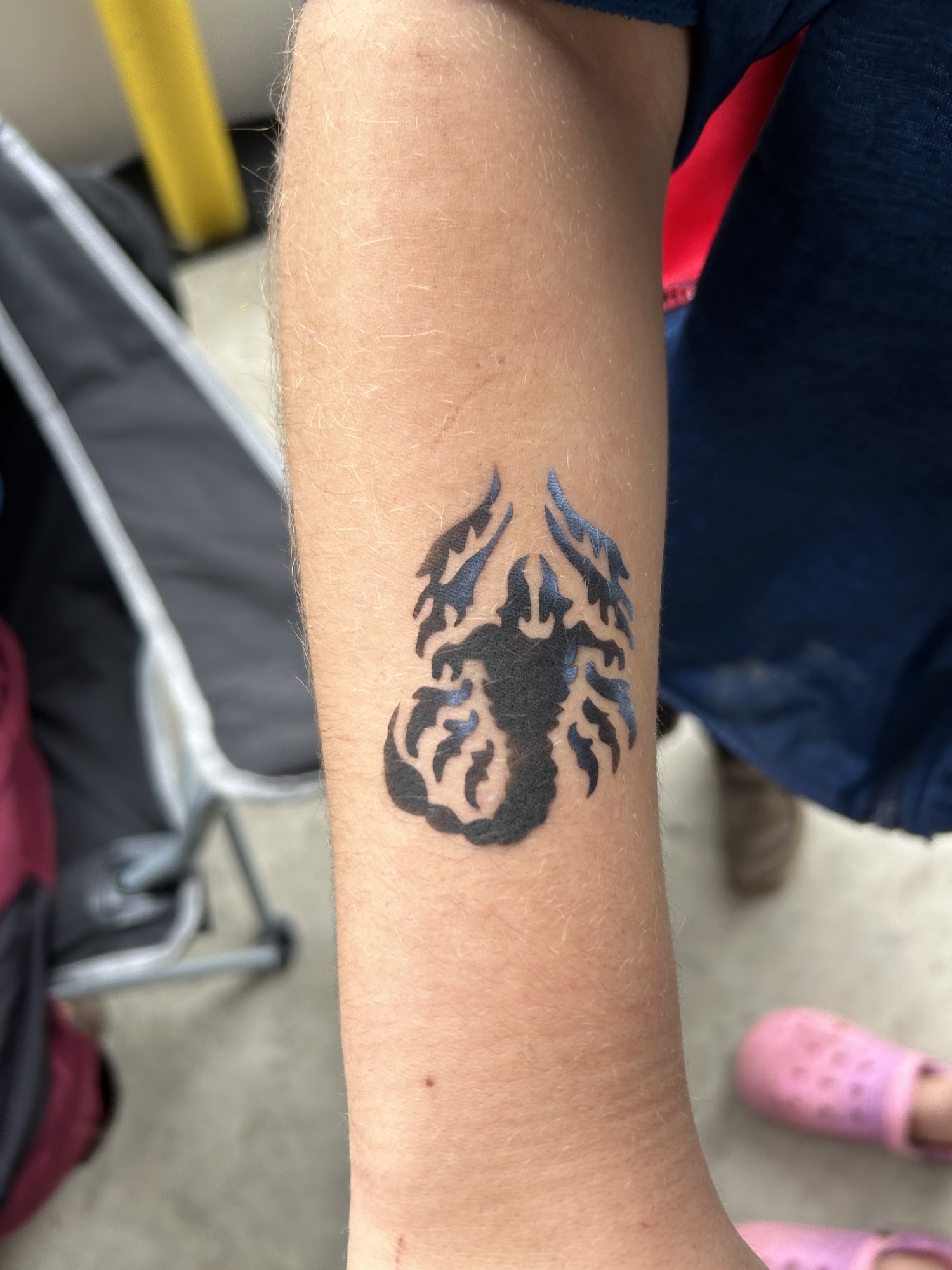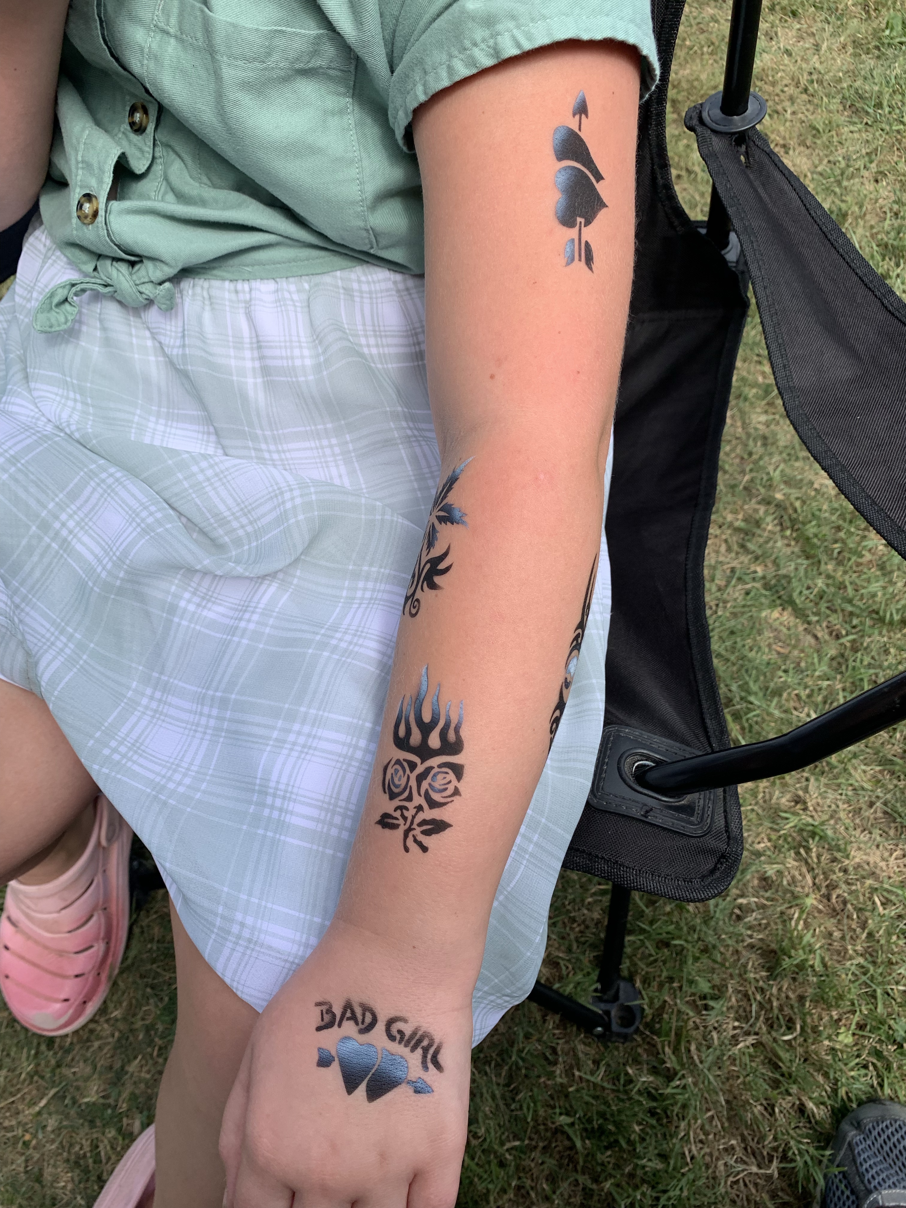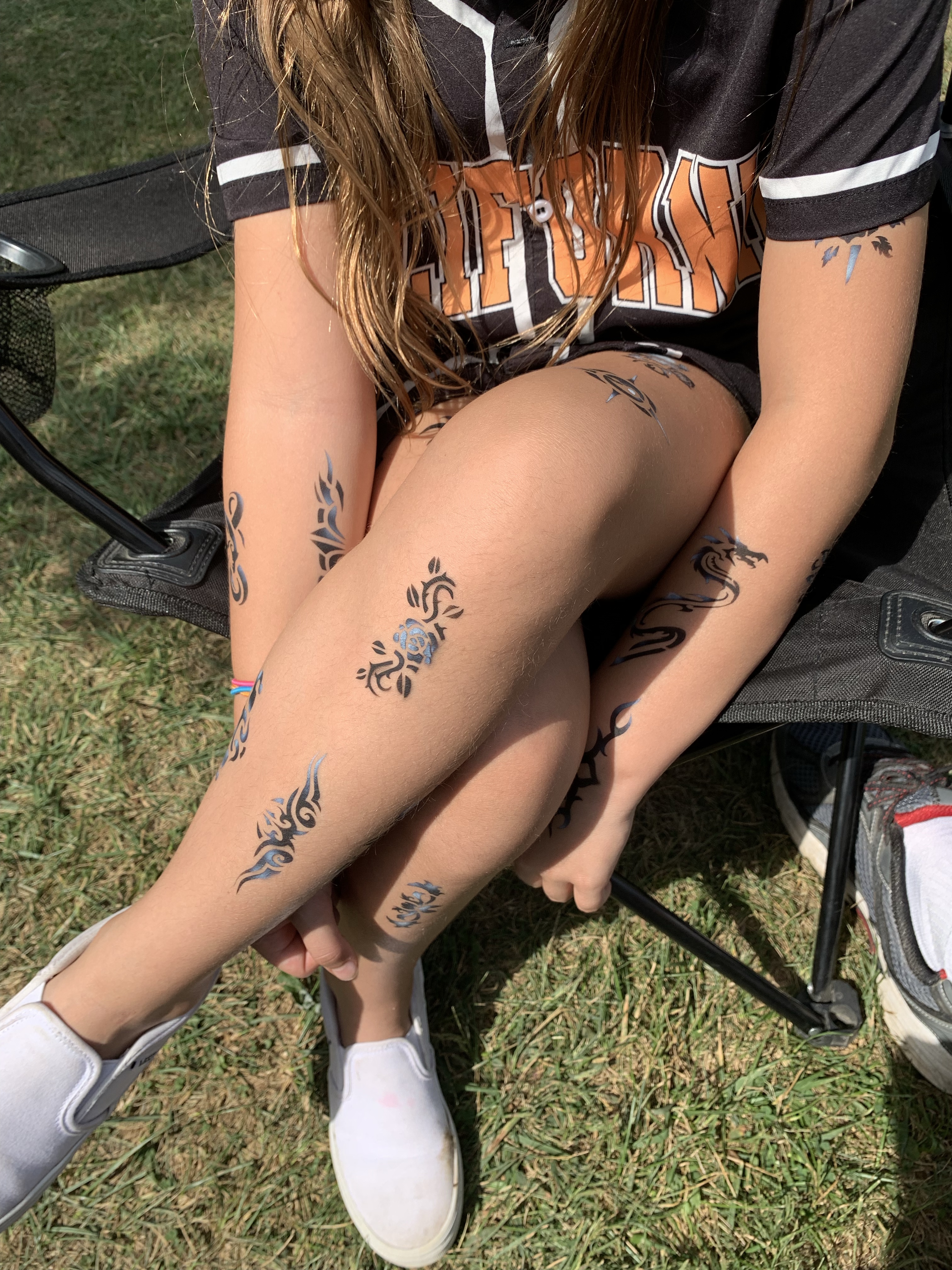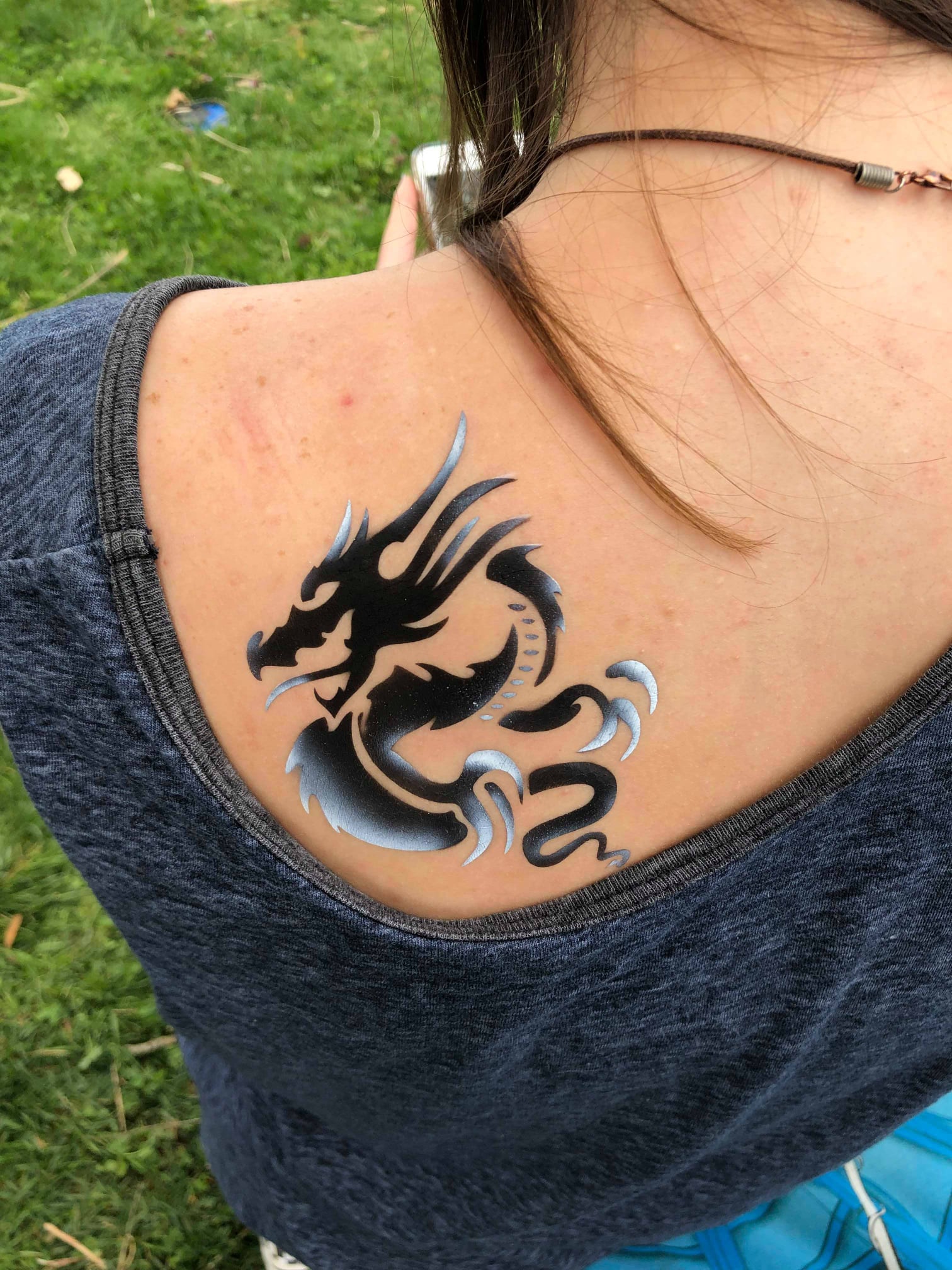 I also do temporary tattoos with my airbrush. Kids and adults all love them!! I am available for parties and events. Just contact me for more information.