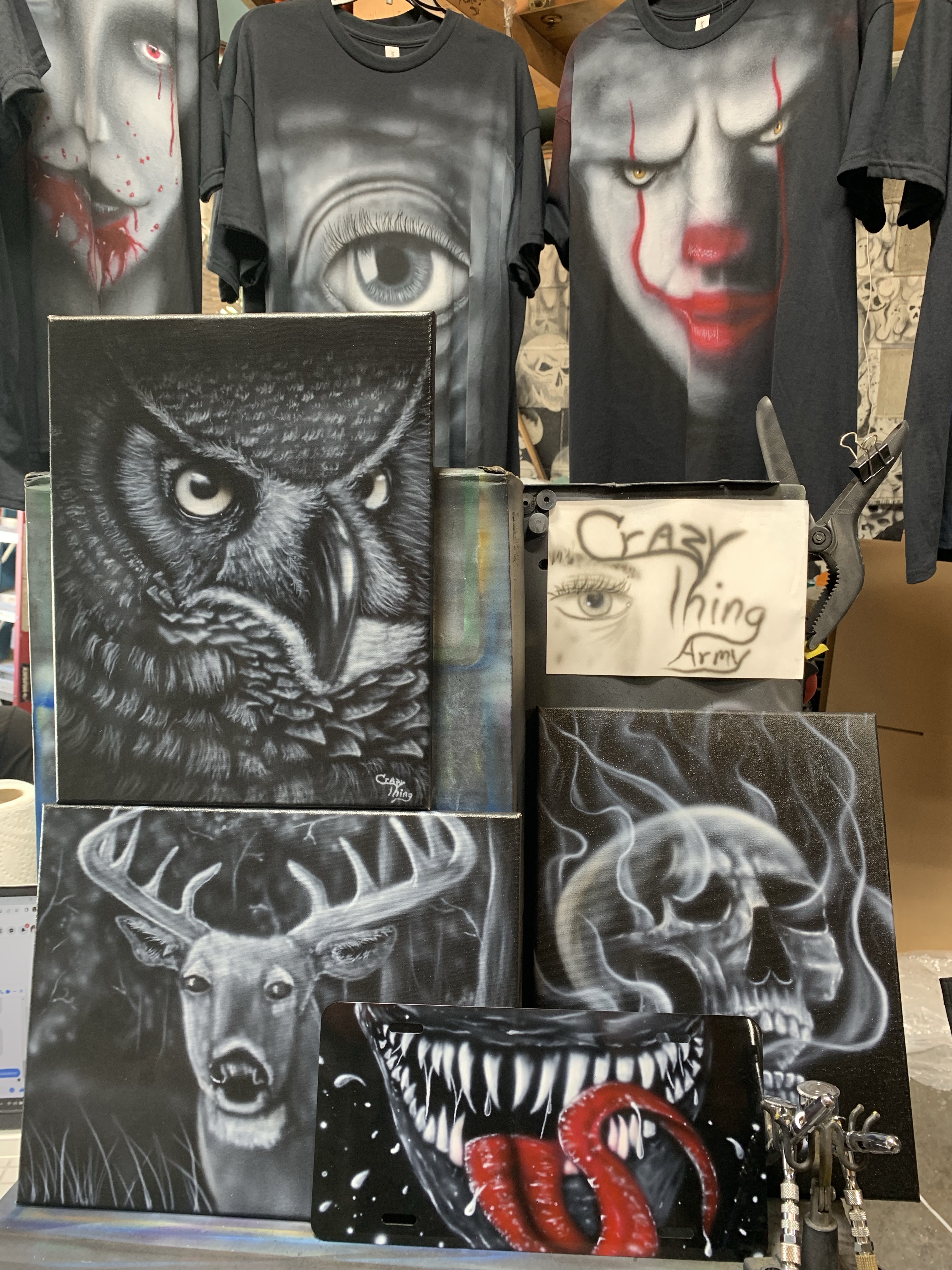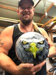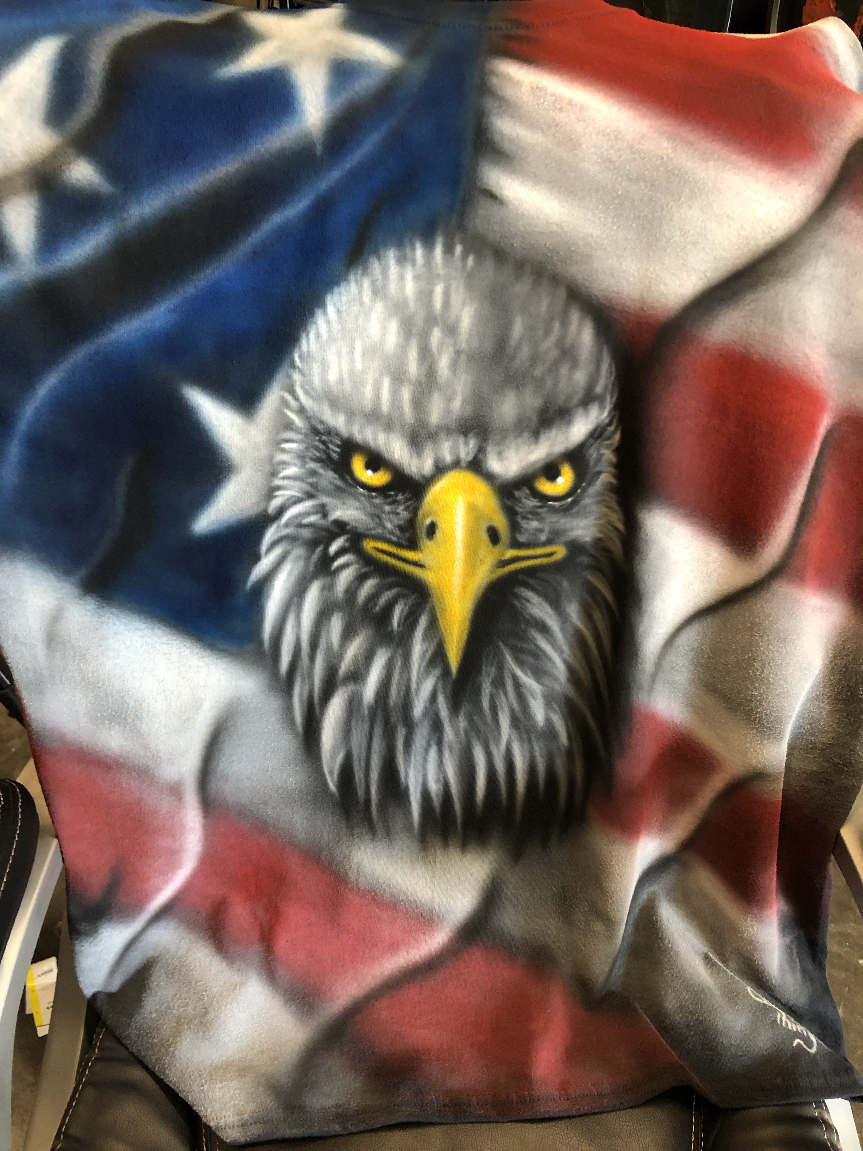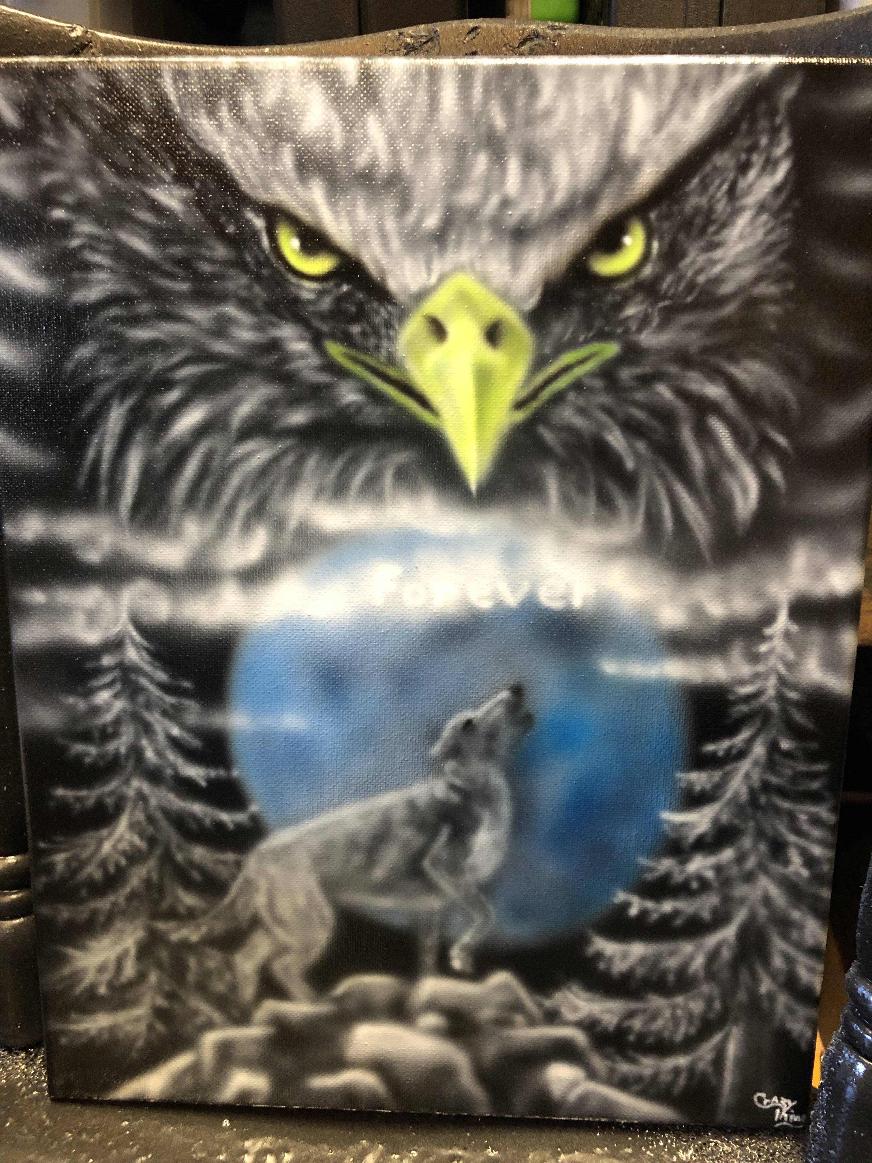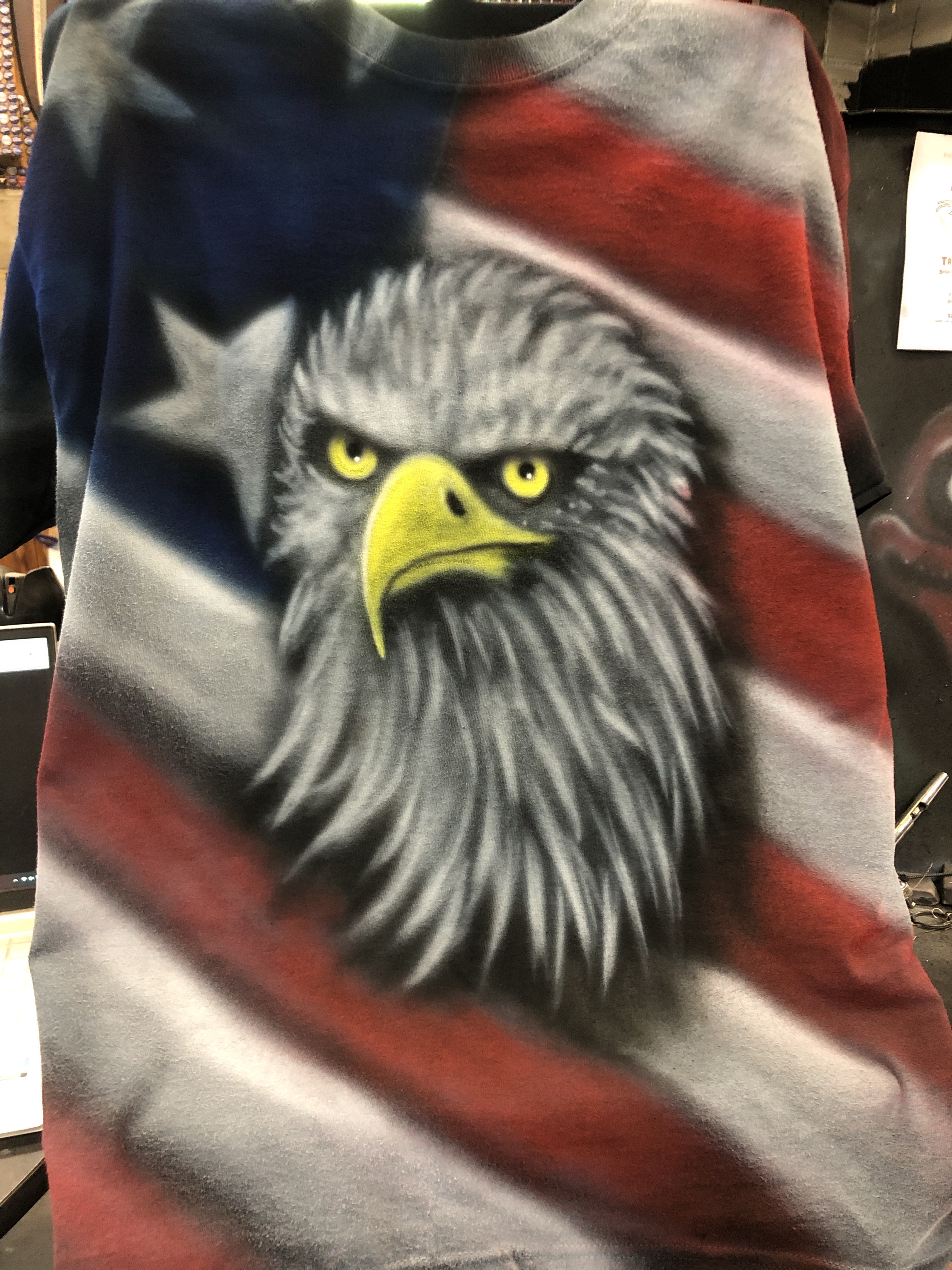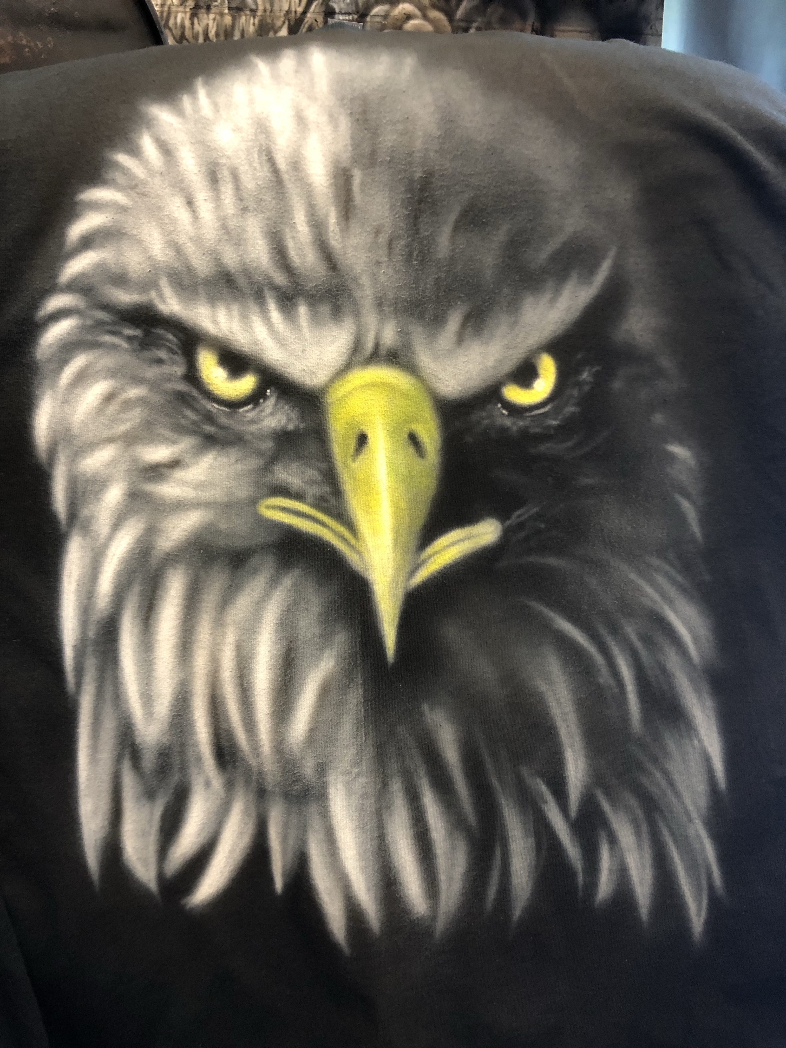 I love my t-shirt, caps & my eagle canvas you did. I love your work. It has a uniqueness to it & the details are amazing. You are my artist & you will be doing more work for me in the future. Love the fact it is all free handed. Thank you for being so AWESOME at what you do.