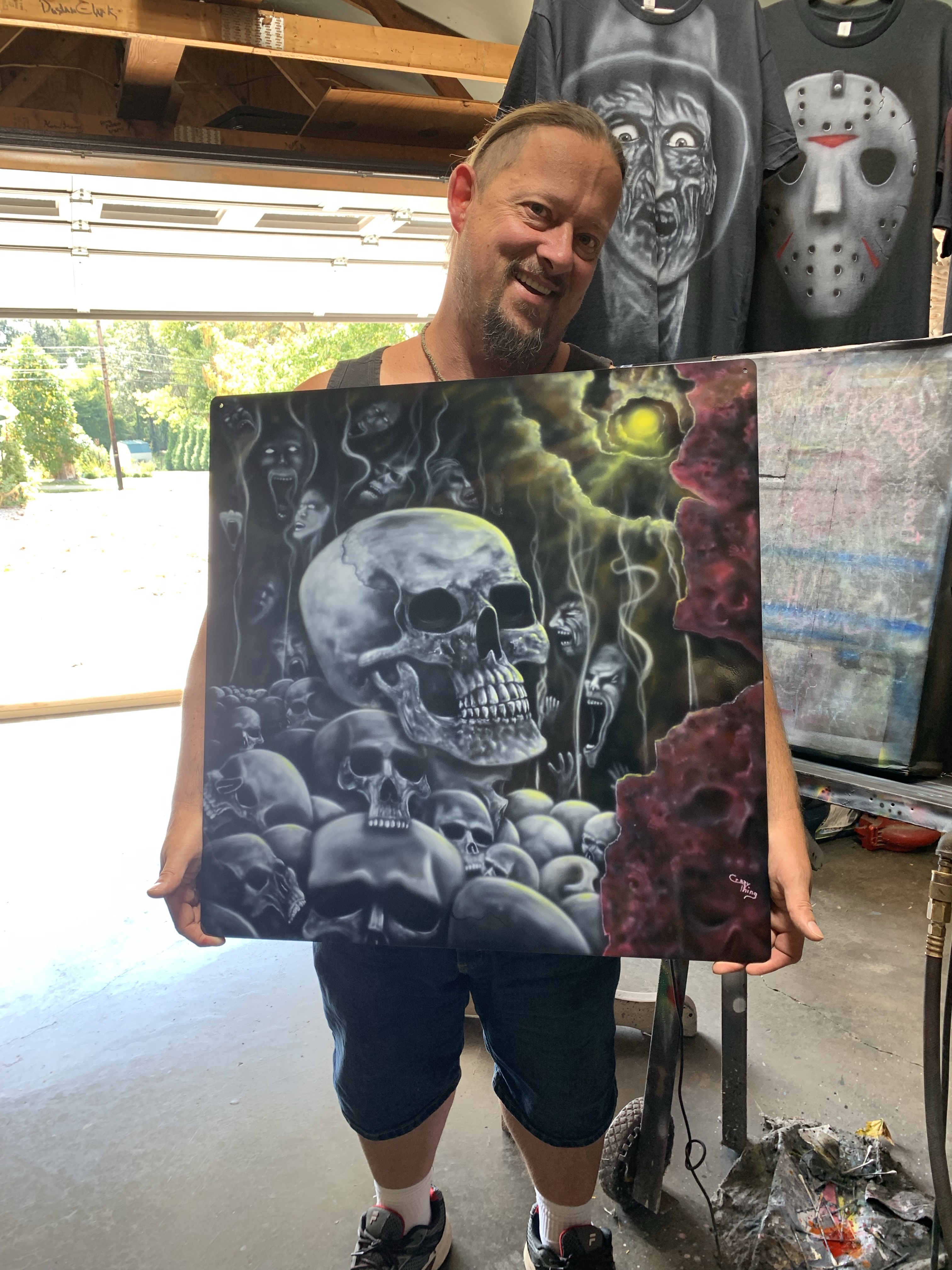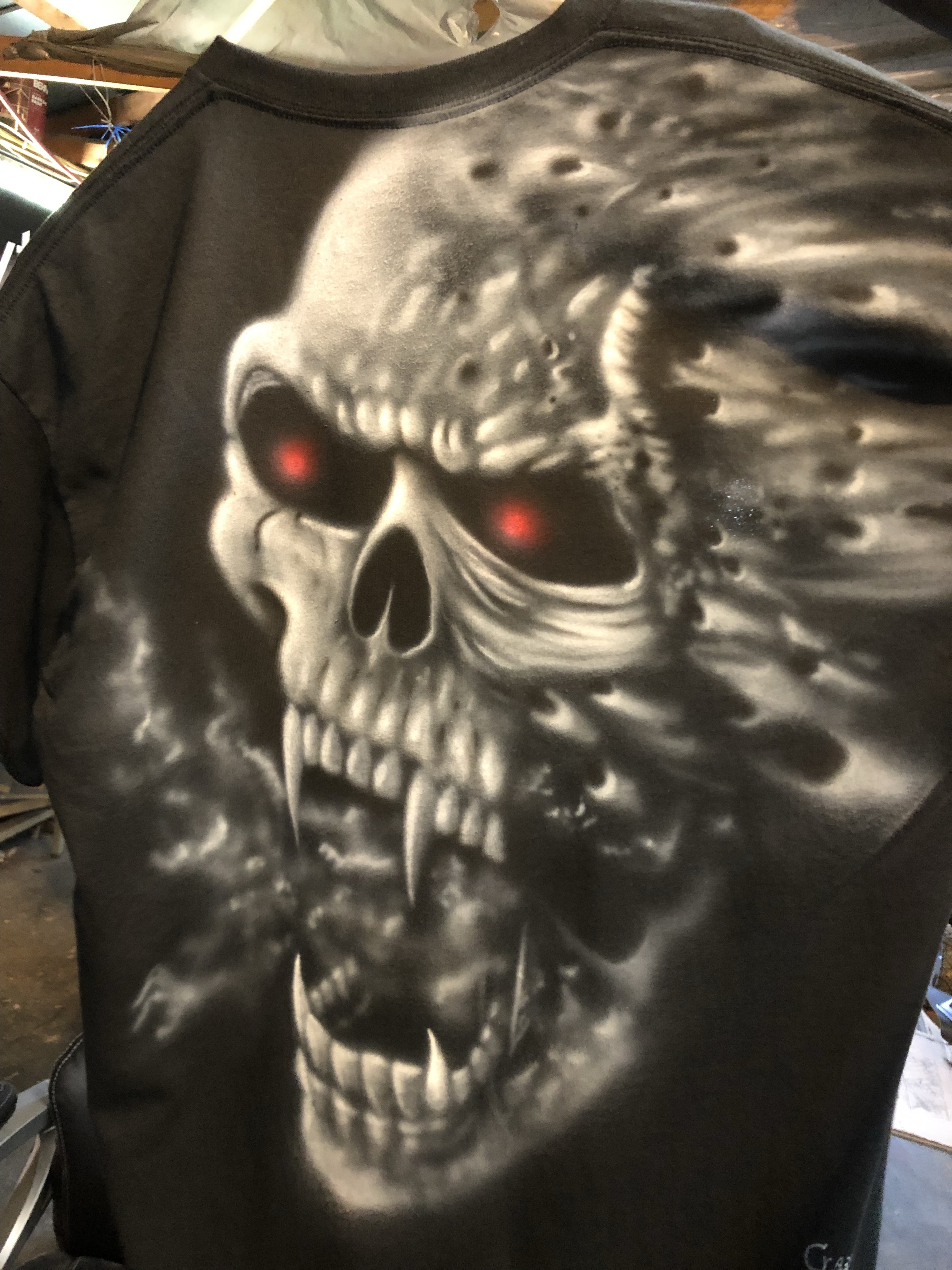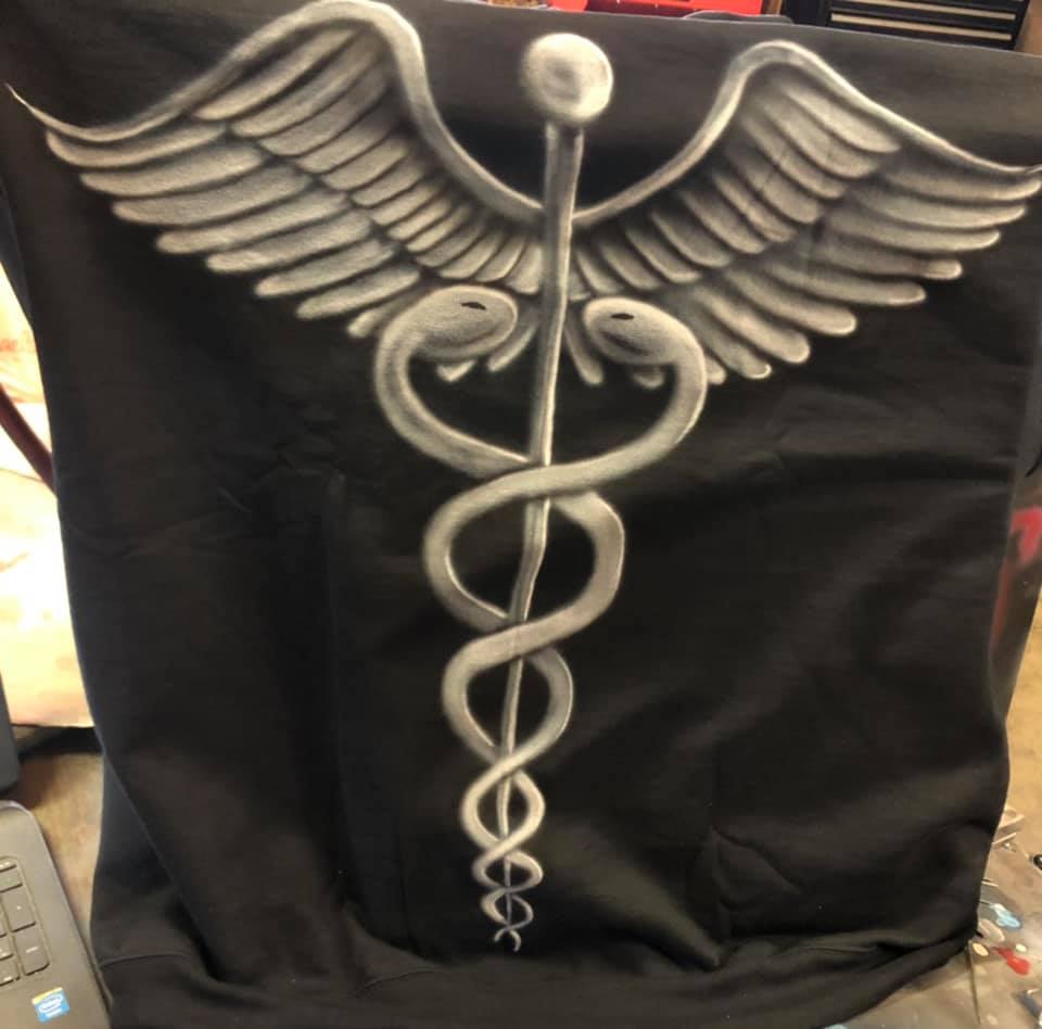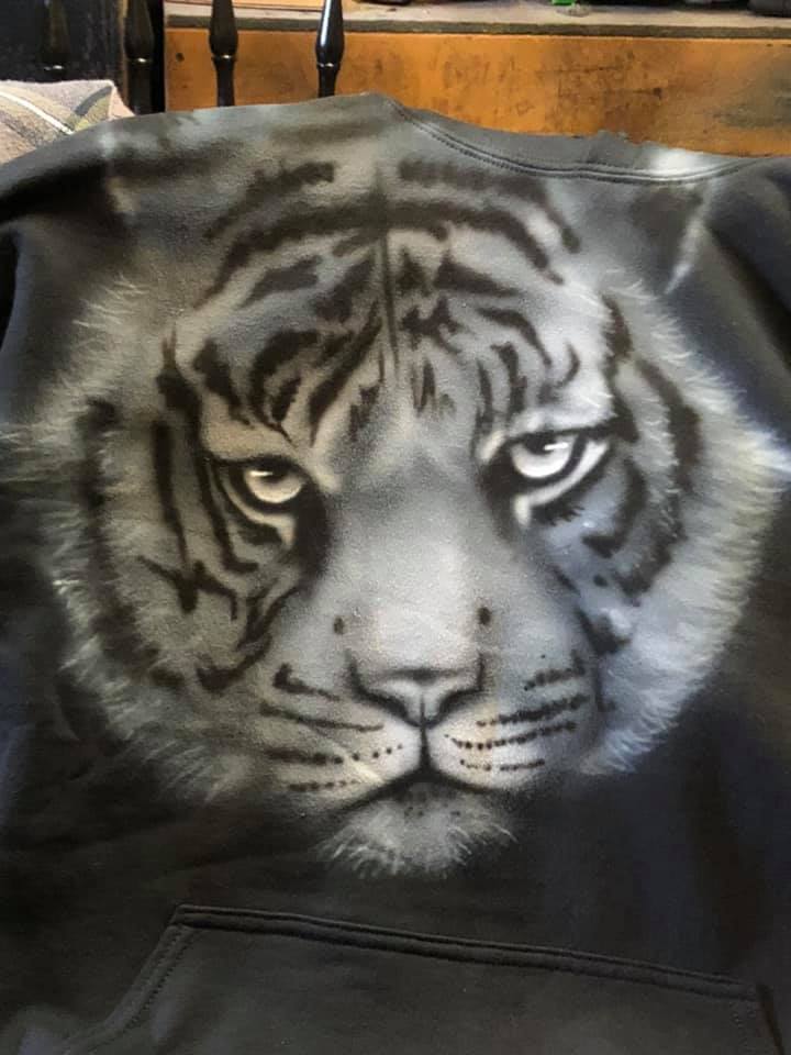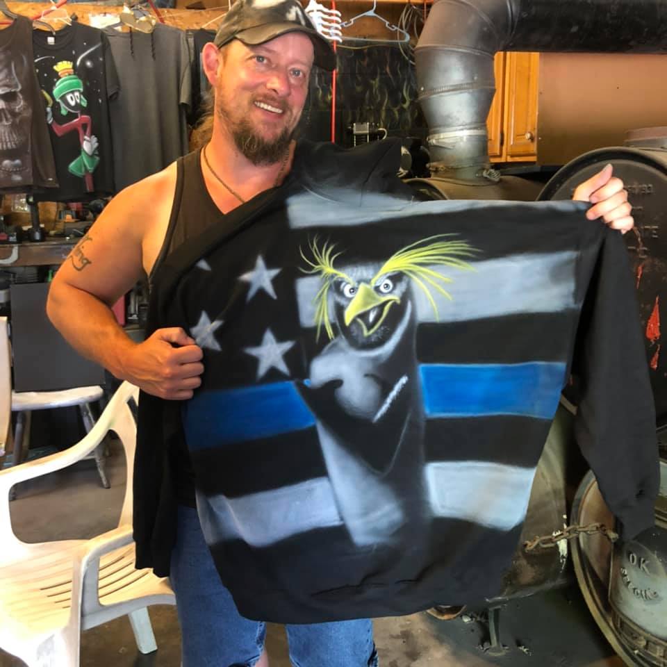 I love my t-shirt, caps & my eagle canvas you did. I love your work. It has a uniqueness to it & the details are amazing. You are my artist & you will be doing more work for me in the future. Love the fact it is all free handed. Thank you for being so AWESOME at what you do.