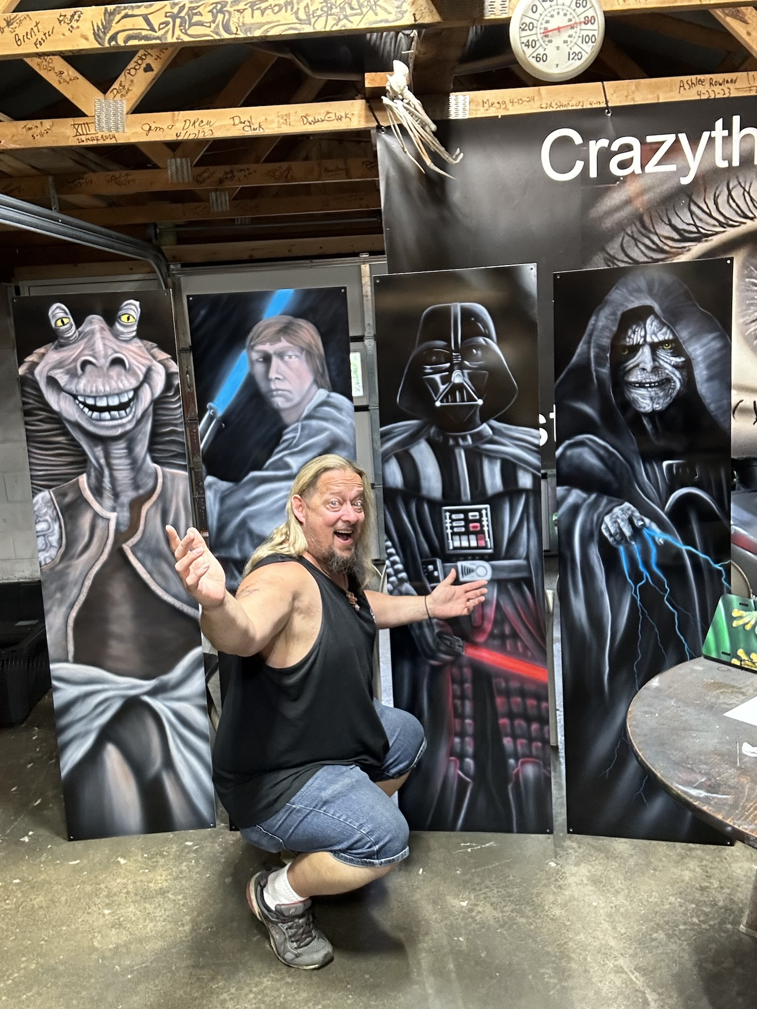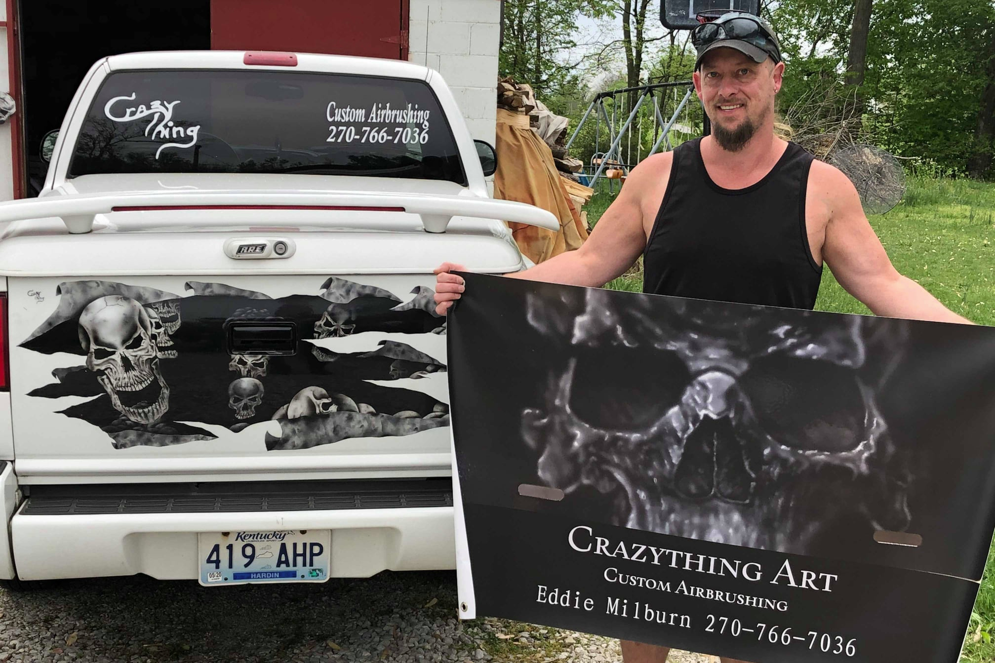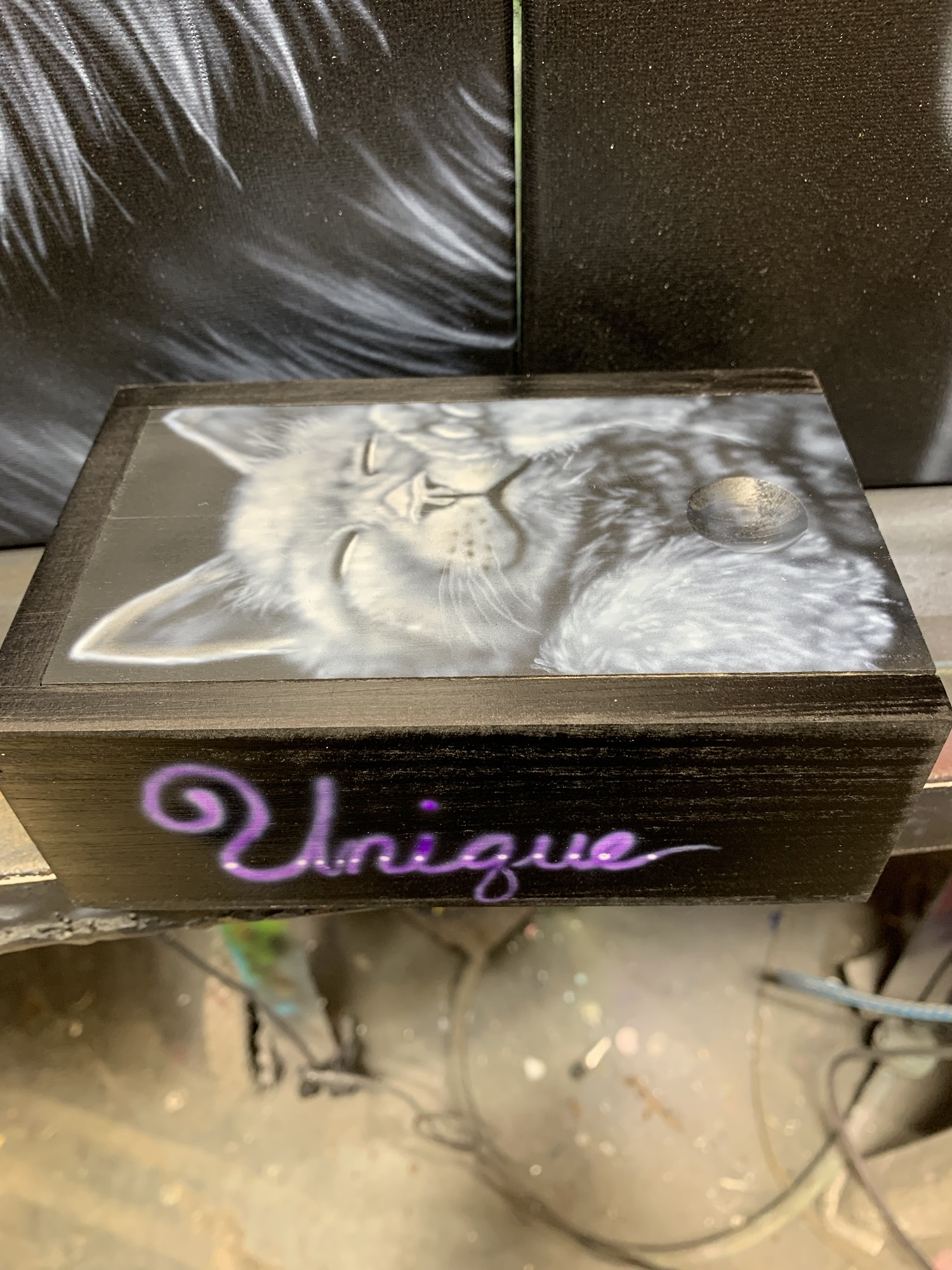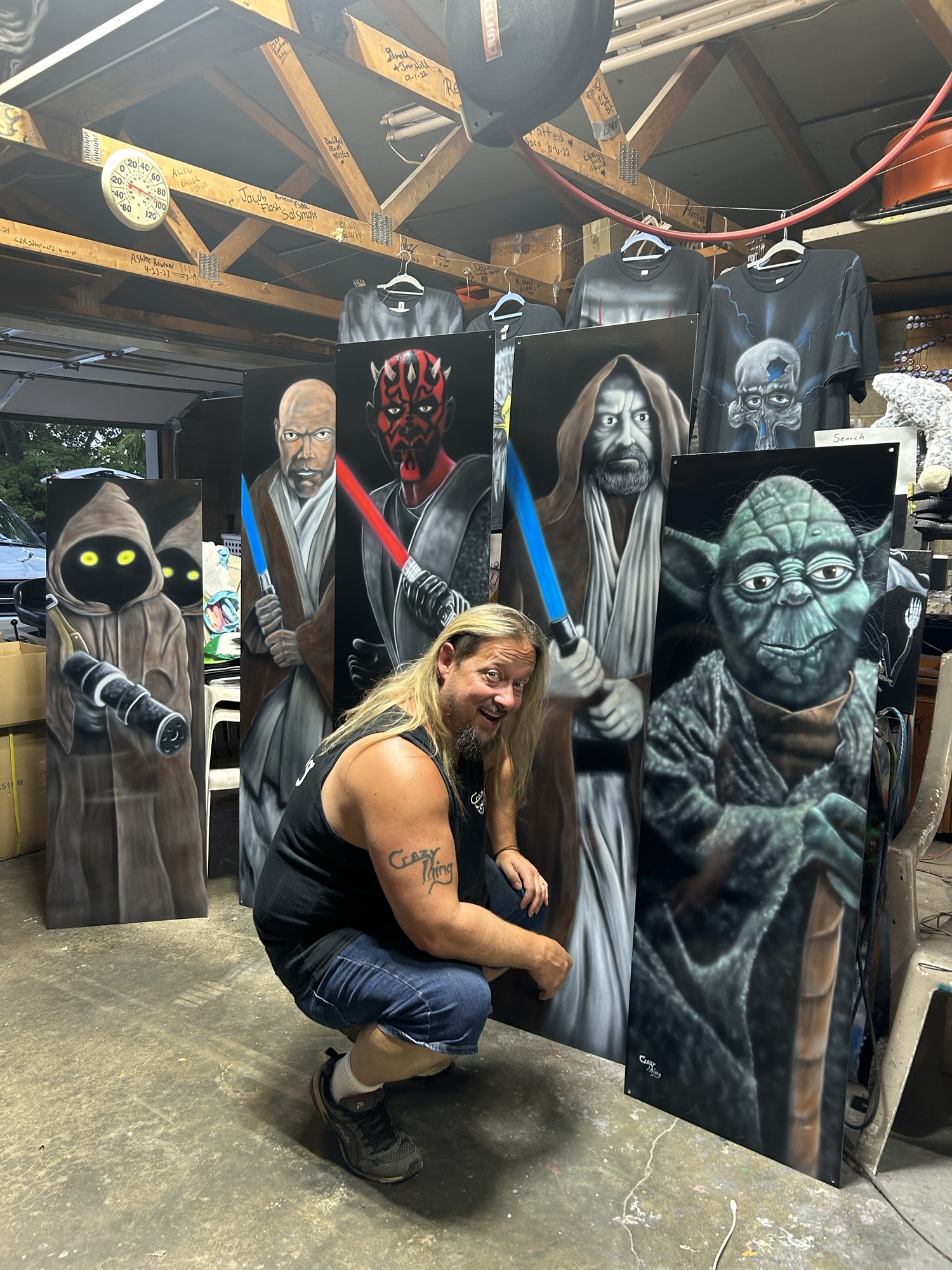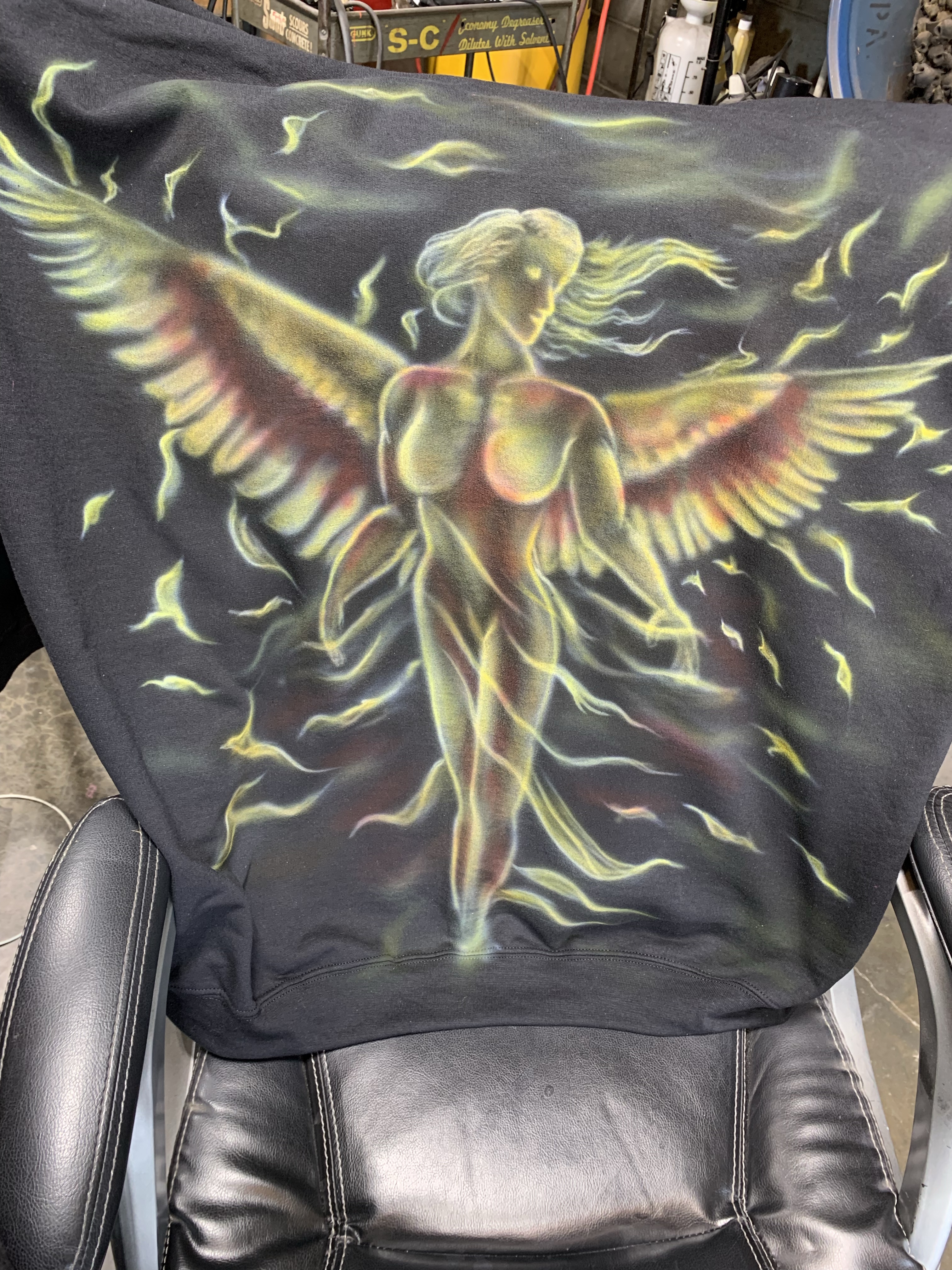 I love my t-shirt, caps & my eagle canvas you did. I love your work. It has a uniqueness to it & the details are amazing. You are my artist & you will be doing more work for me in the future. Love the fact it is all free handed. Thank you for being so AWESOME at what you do.