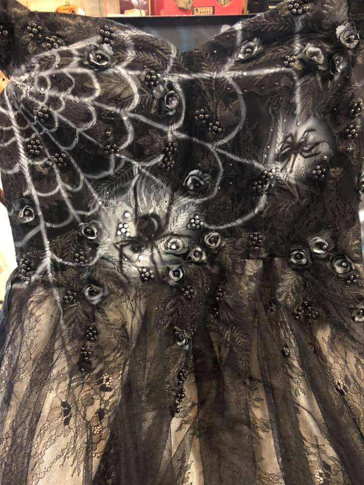 Matrimony prep is going to make my wedding dress it has painted black designs in it she said you are doing a wedding dress for her now